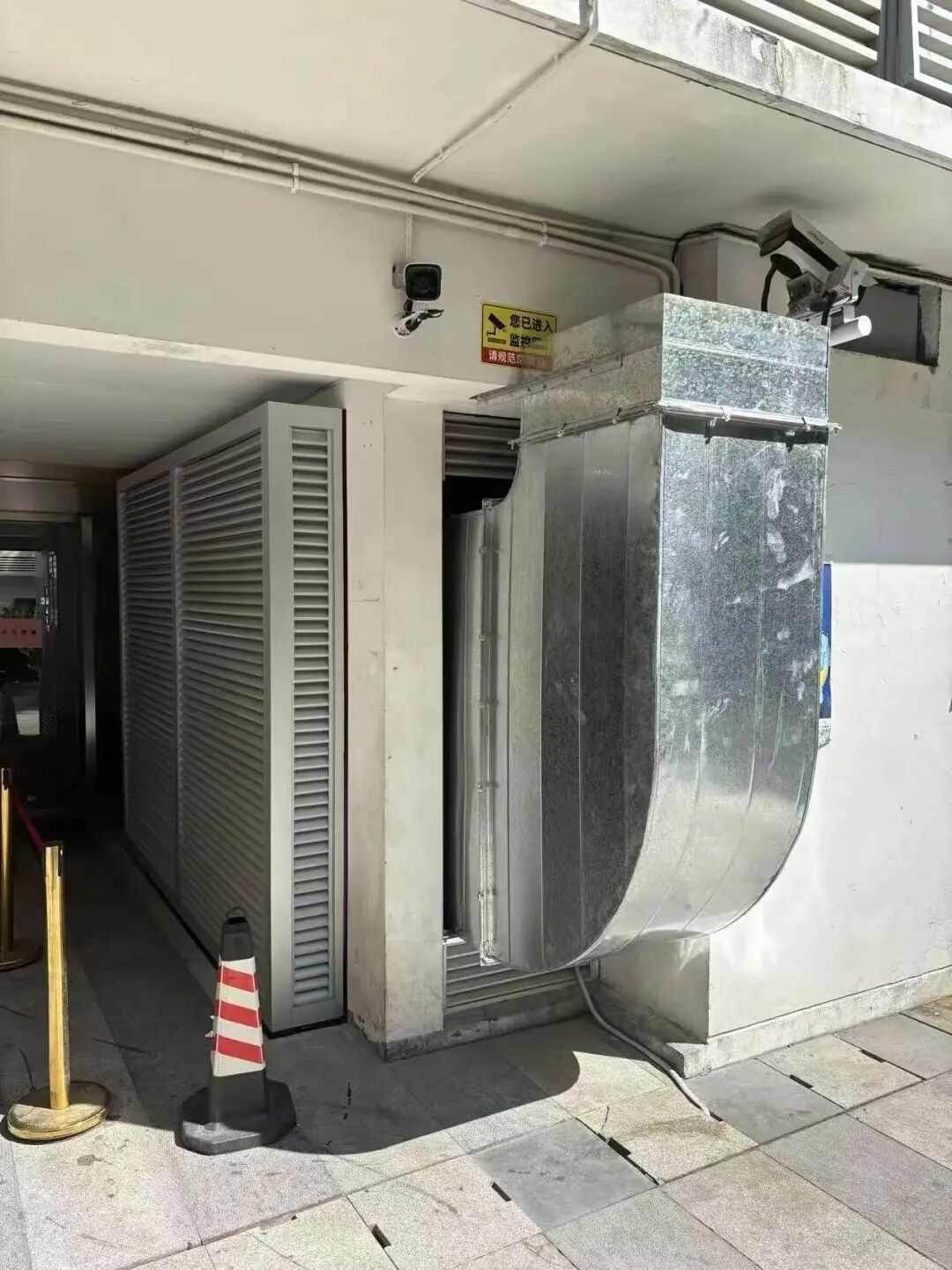 经多次实地走访,执法队员与居民、店主、物业方进行了多次深入的沟通,倾听各方核心关切,平衡各方的利益诉求。经过积极斡旋,一个临时 “降温”的方案先达成——由租赁方瑞安集团提供一台冷风机,临时设置在受影响的通道用于中和空调外机产生的热风,用电由物业方复欣物业承担,小山堂负责设备的冰块添加与日常维护。冷风机运作后,通道的环境一定程度上得到改善,居民的不满情绪也有所缓解,通过这次合作,各方逐步收起成见,为后续彻底解决空调扰民问题奠定了基础。
