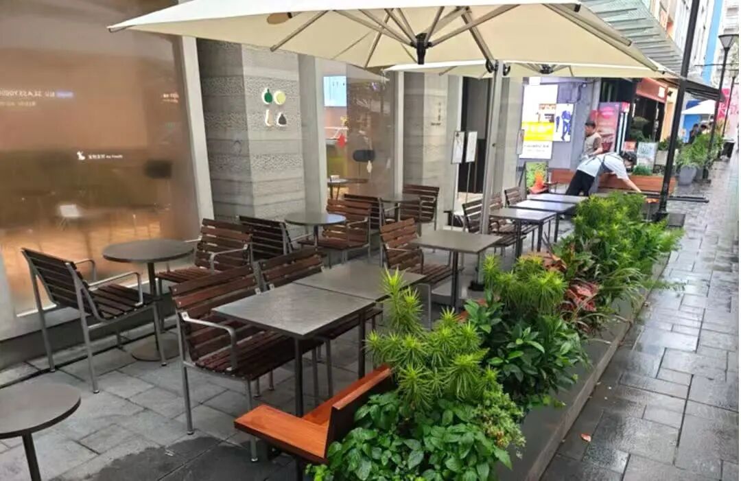 如今,穿行于大学路,小山堂那片精心设计的外摆区已成为街角一景。其面积几乎与室内营业区相当,有效拓展了经营空间。隔断巧妙分隔出相对静谧的角落,既保持了空间的通透感,又为顾客提供了适度的私密性。材质选择质朴温润,色彩搭配清新雅致,与店铺整体的东方美学风格相得益彰。每当天气晴好,三三两两的顾客惬意地坐在室外,手捧一杯特色茶饮,已然成为大学路活力街景的一部分。这个成功的外摆案例,始于规章、成于沟通,最终升华于对街区品质的共同塑造。