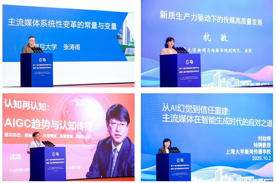 10月12日,第十八届中国新媒体传播学年会暨第八届中国智能媒体传播论坛在上海举办。本次论坛以“智能传播时代的主流媒体系统性变革”为主题,为在智能传播变革、社会发展、国家战略需求的整体视域下思考和探讨系统性变革提供理论支撑和实践指导。论坛由上海大学、中国新闻史学会新媒体传播专业委员会共同主办,上海大学新闻传播学院、上海大学全球人工智能媒体传播研究院承办。来自国内外高校、主流媒体、智能媒体企业和政府主管部门的近三百位代表参会。