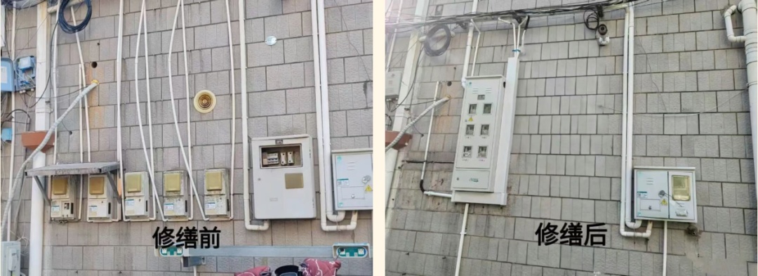 安全是社区幸福生活的底线。国庆假期前夕,高乐社区联合社区民警和物业,对小区各车库进行全面排查。巡查中发现,高乐小区86弄50号沿街商铺的老旧电表因缺少维护,挡板脱落,电表裸露在外,存在安全隐患。隔天清晨,在与商户逐一沟通后,物业立即组织专业人员进场施工,为电表统一加装保护箱并整理管线,对应商铺也做了清晰标注,原本杂乱的墙面变得整洁有序。这一迅速有效的整改,赢得了居民和商户的一致认可,为节日安全提供了有力保障。