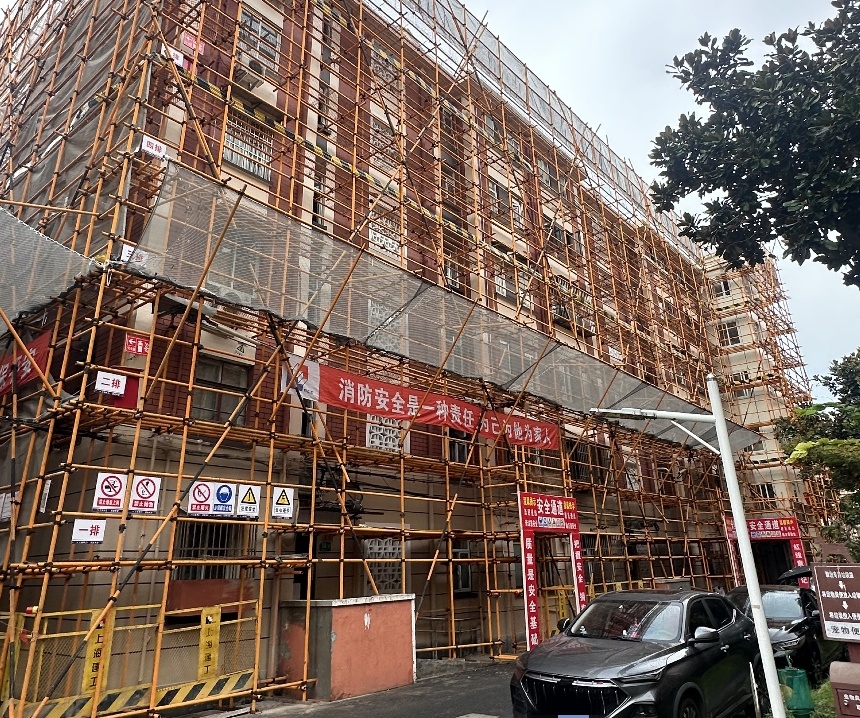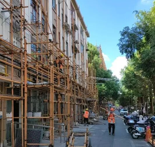 截至目前,小区已完成61—62、41—42、120—121等9幢房屋的脚手架搭设,为后续施工创造条件;同时,外墙面粉刷层检查修复工作全面启动,施工人员通过专业仪器排查墙面空鼓、裂缝等问题,逐一标记并制定修复方案,确保外立面修缮质量。“老旧小区改造关乎居民切身利益,我们坚持‘质量优先、进度跟上’,每一道工序都严格把关,让改造成果经得起时间检验。”江川路街道相关负责人表示。