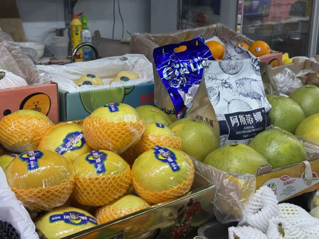 此外,摊位上蜜橘、果冻橙、葡萄柚等“柑橘家族”成员也琳琅满目,与柚子共同构成秋日水果的“黄金阵容。