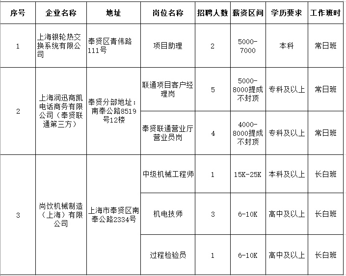 工作地点:奉贤全区域(该岗位需外出作业)。