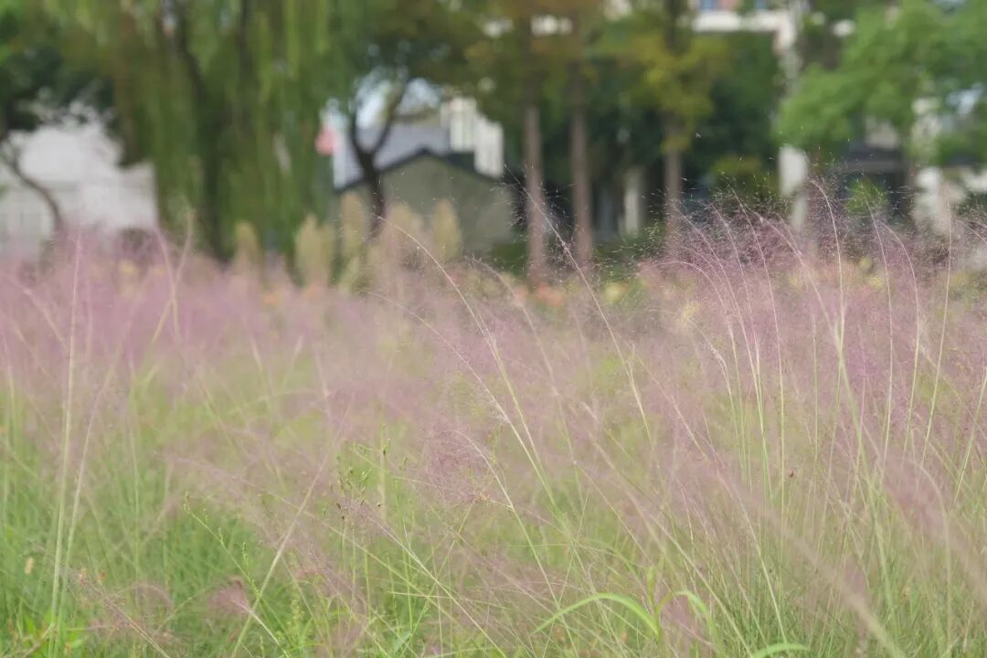 移步五四村,临水的粉黛乱子草又添几分灵动。它们依偎着清浅河岸生长,不是花却比花更浪漫。一支两支看起来平平无奇,一簇簇一团团就会变身粉色海洋,路过时,很难不被它的色彩所吸引。