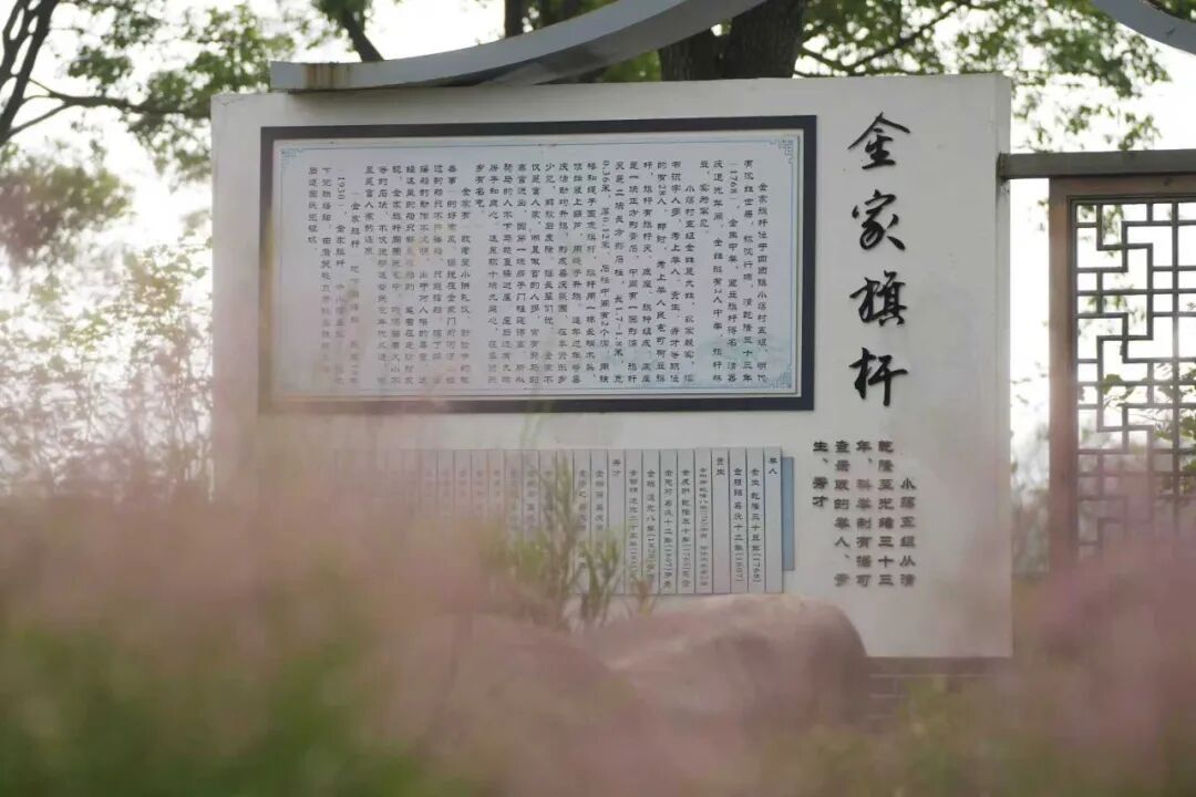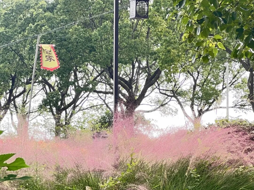 小荡村金家旗杆默然矗立,见证百年沧桑。而此刻,它被另一种温柔所簇拥,粉黛乱子草正值盛放,纤细的草茎托起如烟似雾的粉红花穗,随风摇曳。