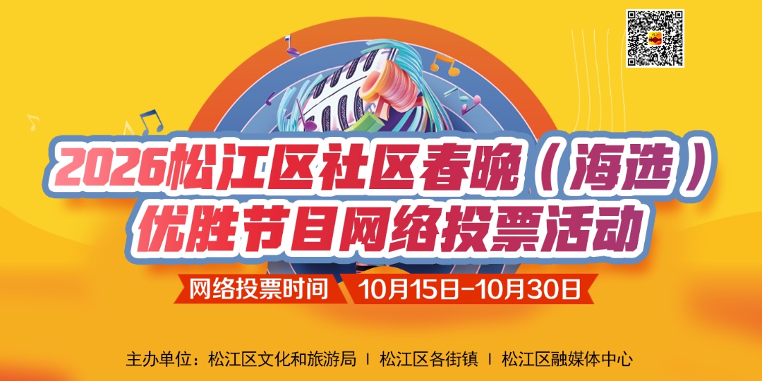 这个秋天,松江的舞台因热爱而璀璨!由松江区文化和旅游局、松江区融媒体中心携手各街镇共同打造的“2026松江社区春晚”大型文艺选拔活动已完成4场现场选拔,分别是新桥镇、九里亭街道、佘山镇、泗泾镇。经前期海选,部分节目已顺利晋级复赛。现场未能晋级的优胜节目,将开启本轮为期两周的网络投票。最终所有街镇中票数排名前六的可以拿到复赛“入场券”,角逐社区春晚名额。 在海选现场,我们欣赏到了无数来自松江街头的动人歌声、惊艳舞姿和神奇绝技,他们带着对生活的热爱站上了这个舞台。现在,聚光灯交到您的手中——最激动人心的线上投票环节正式开启,我们需要您火眼金睛的发现和热情洋溢的点赞。“2026松江社区春晚”需要您的支持。