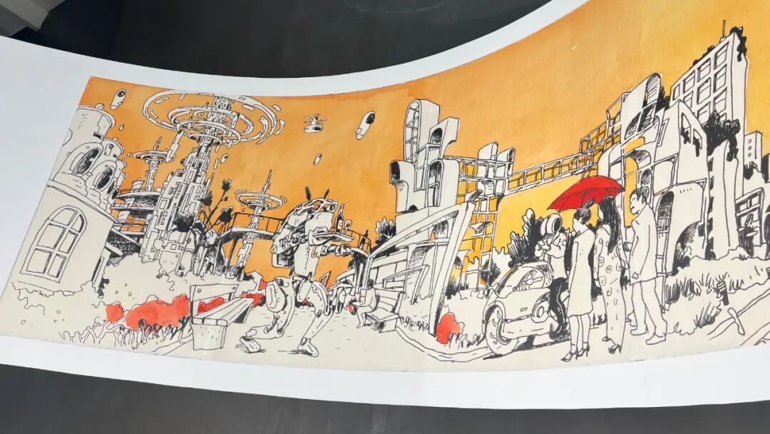 长卷的末端,艺术家以想象力描绘未来:低空经济、人工智能、滨水公园、休闲商业……这些美好的憧憬,也是光华路未来规划中的一部分。光华公司计划继续沿六磊塘打造河畔经济,未来有望重建众安桥,完善公园和商业配套,打造更具活力的河滨空间。