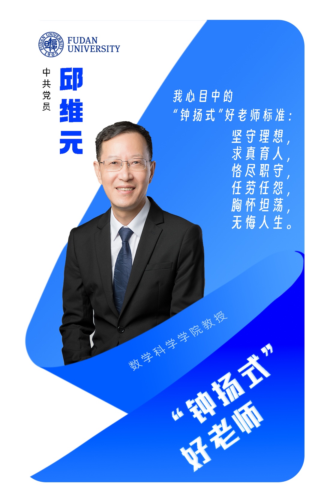 今年,邱维元荣获复旦大学“钟扬式”好老师称号。