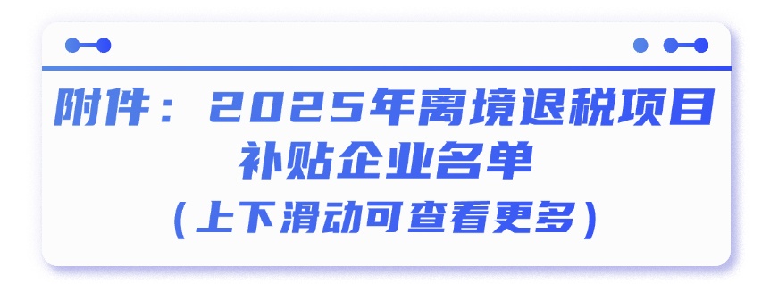 根据市商务委等四部门关于印发《上海市商务高质量发展专项资金文旅商体展联动项目(商务方向、文旅方向、 体育赛事方向)(第二批次)申报指南》的通知(沪商消费〔2025〕189号,以下简称《申报指南》),将其中“离境退税项目”纳入本次企业“免申即享”政策范围,支持离境退税商店购置开具退税申请单业务的计算机、打印机、护照验证机等设备,在店堂内外放置、张贴、悬挂退税引导标识和海报,宣传国家境外旅客购物离境退税政策等。