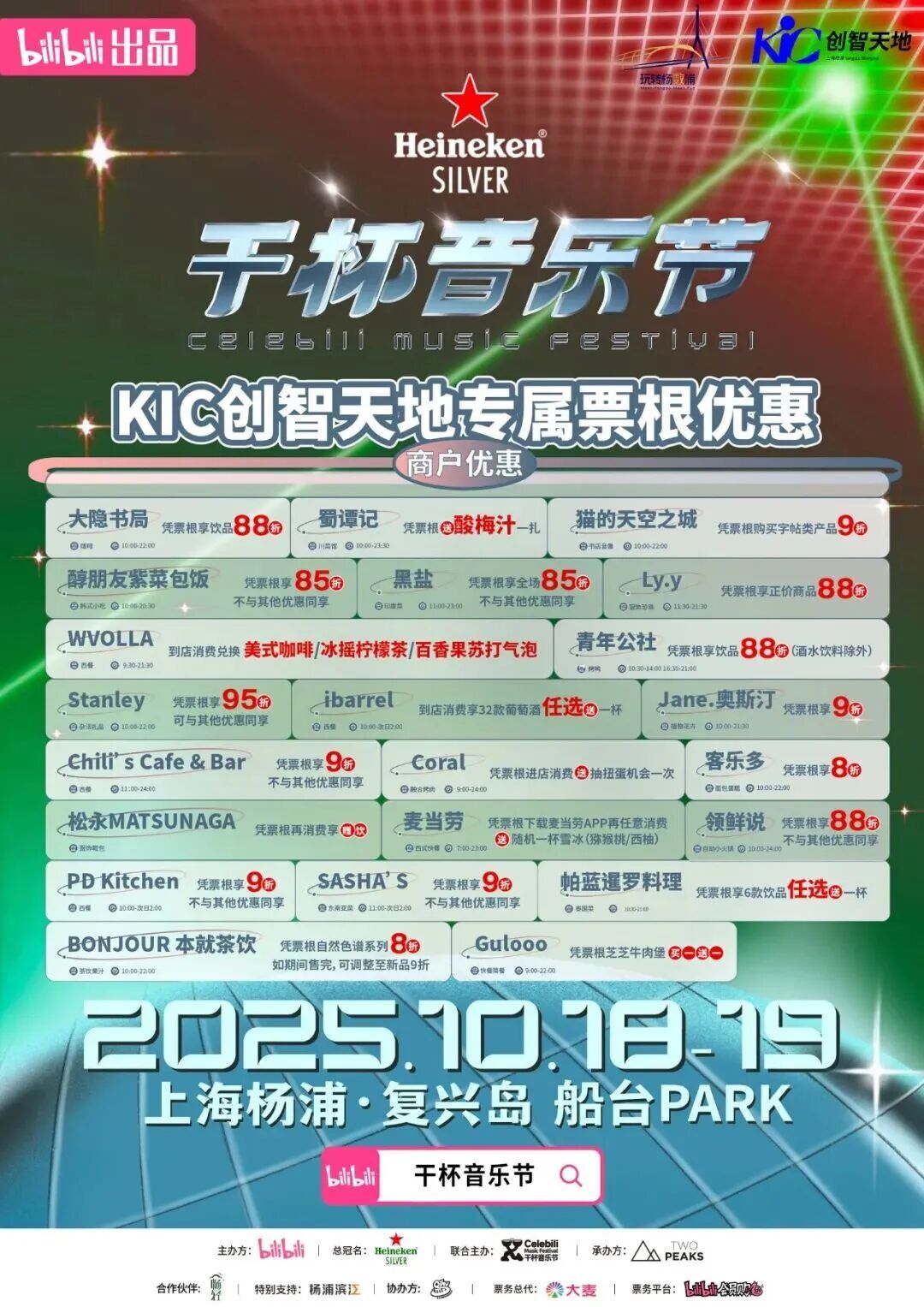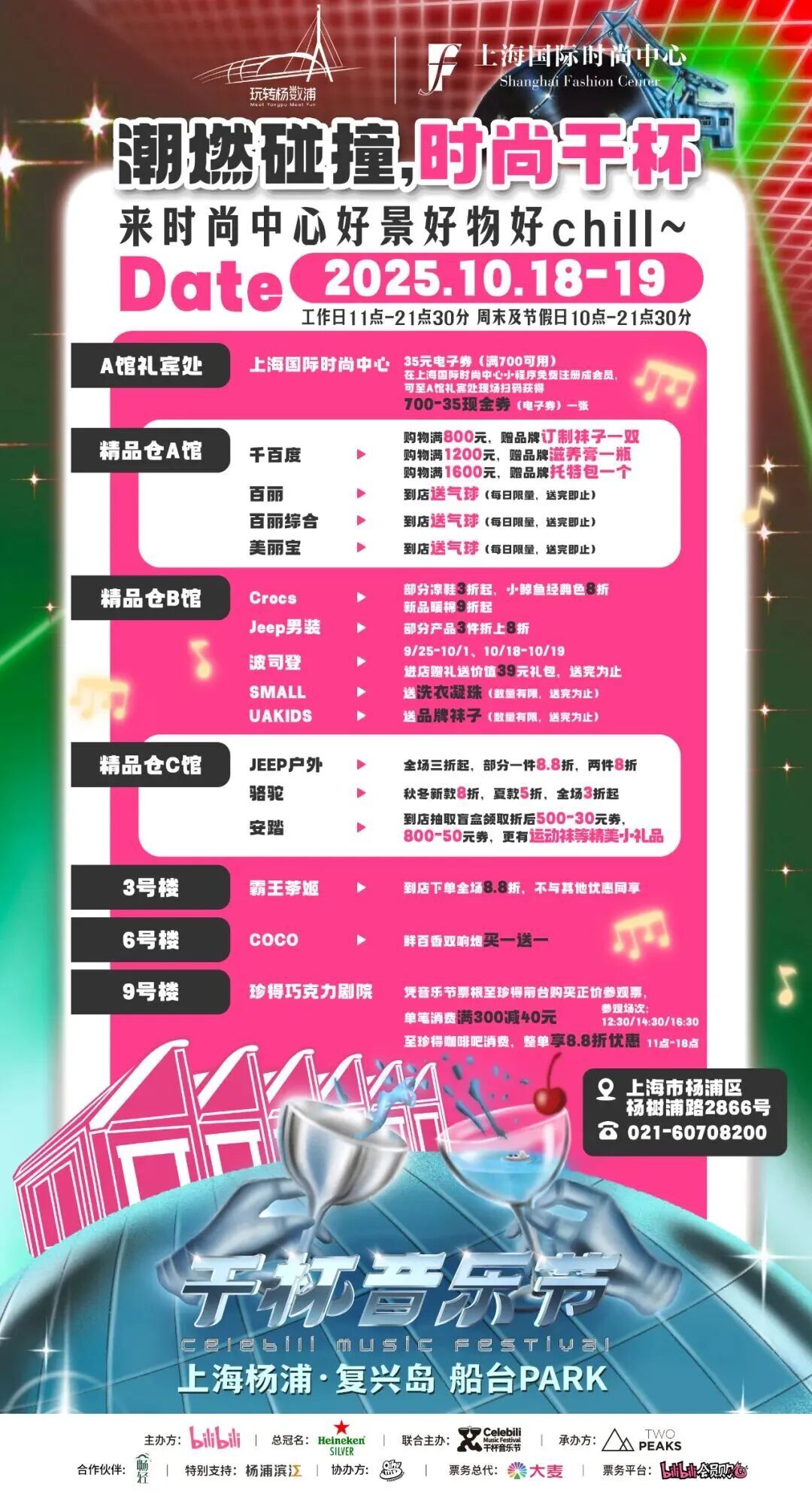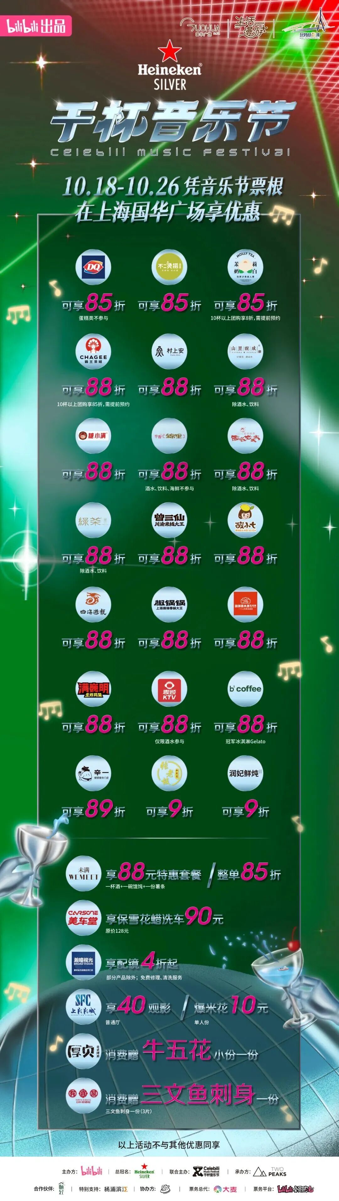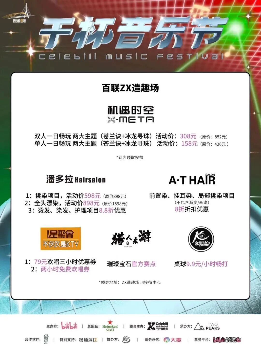 不仅如此,干杯音乐节期间,手中的票根不仅能观众“嗨”玩音乐节,还可以解锁百联又一城、合生汇、万达、国华广场等联动商场的专属福利,实现吃喝玩乐购一站式满足,欢乐不停!