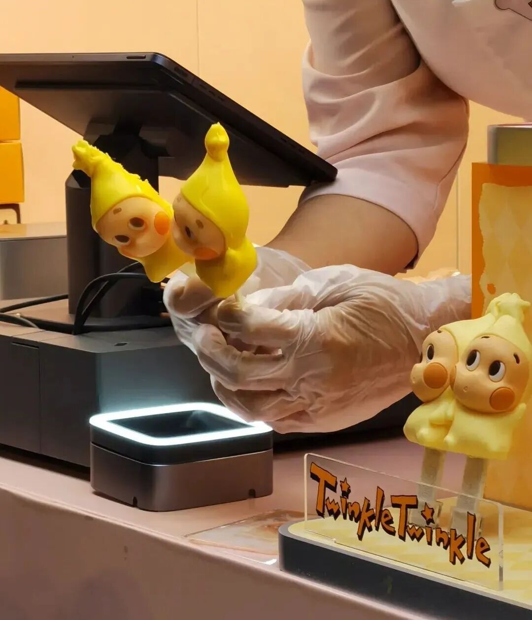 再比如,泡泡玛特的快闪餐车前排起长队,Molly主题冰淇淋的蓝色光晕与滨江夜景相映成趣;隔壁老大同手作工坊则带来了反差惊喜,用大米研发的冰淇淋,让白领们直呼 “解锁了老字号的新打开方式”。