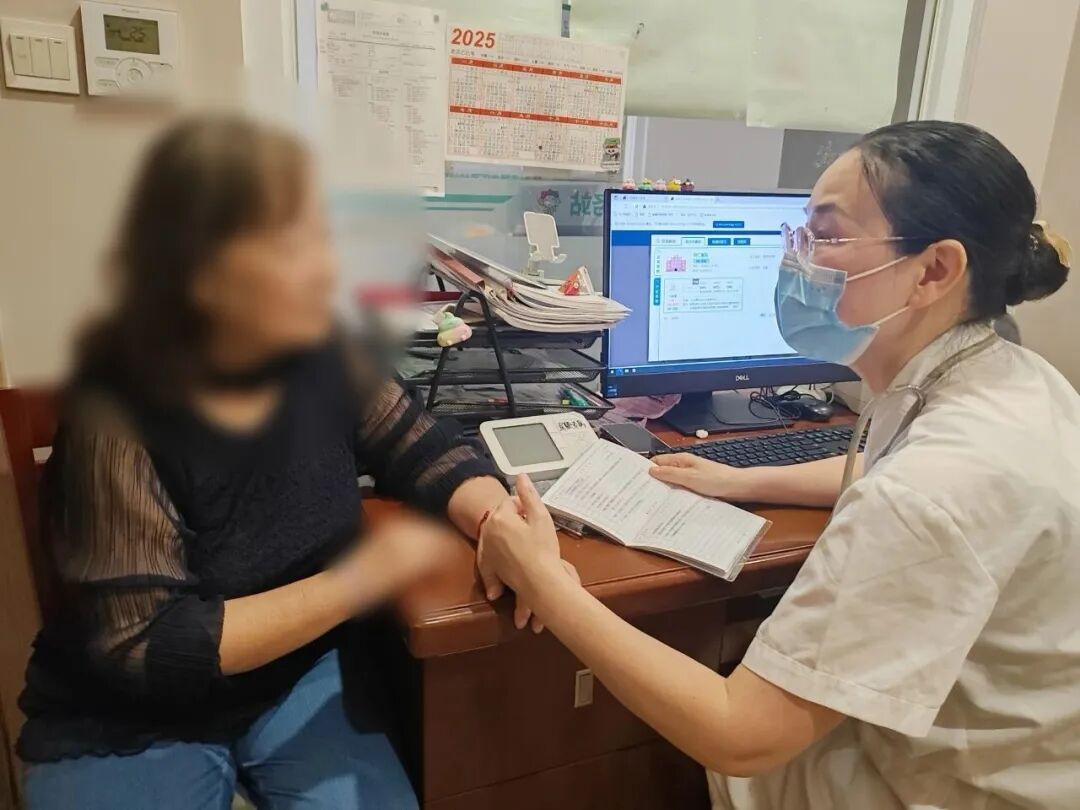 看到走进卫生服务站的朱阿姨面色不对,服务台的工作人员马上迎上前去,简单询问情况后立刻将她送到叶晓景的诊室。