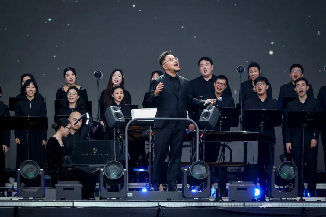 上海彩虹室内合唱团自2010年成立以来,以其多元的创作风格和扎实的音乐素养深受观众喜爱,多部作品成为年轻人情感表达的“神作”。此次音乐节,合唱团以近五十人的全编制阵容登台,艺术总监、指挥金承志携手钢琴伴奏吴经纬,精心编排了近两年巡演中的代表性曲目。