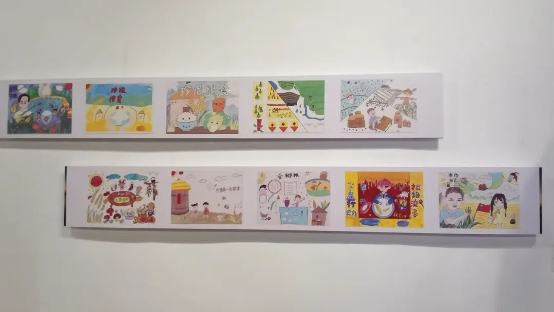 现场还展出了80幅由周边学校学生创作的“爱粮节粮”主题画作,经青少年活动中心专家评审,评选出一、二、三等奖。一等奖获得者之一、方塔小学学生陈垚桦告诉记者:“我画了一个小男孩抱着稻穗站在稻田前,我想通过这幅画告诉大家,粮食来之不易,每一粒米都凝聚着农民伯伯的辛勤汗水,我们要珍惜粮食、节约粮食。”