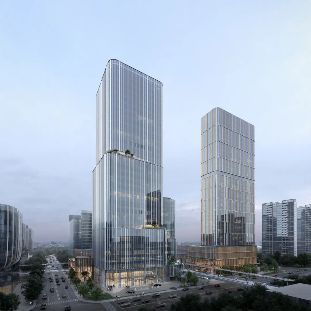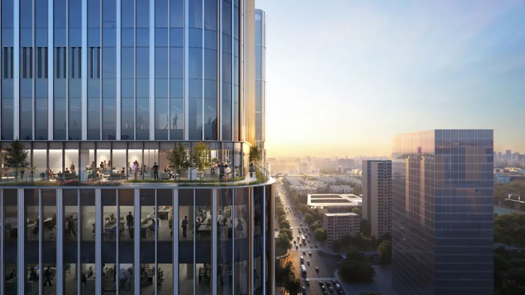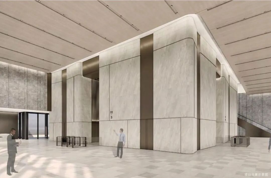 办公用商务楼(T1)为39层(实为30层),立面细节在提升整体效果的同时,也增添了舒适与细腻的体验。其拥有独具匠心的“错位”型设计,不仅在外观上让人眼前一亮,更将整幢建筑划分为低区、中区、高区,各区有独立的电梯间,入驻企业可尽享独立的专属空间和出入通道。