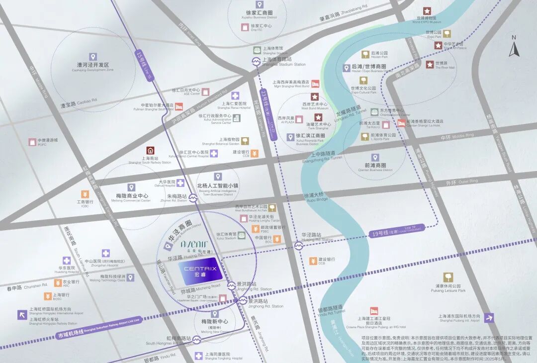 CENTRIX宏睿所在的华泾镇历史悠久,文脉绵延。如今的华泾镇,依托人工智能产业赋能、交通升级和学区提升,正在快速蜕变成为徐汇区高质量发展的新增长极,规划地上总开放体量超过180万平方米,涵盖商业、办公、酒店、住宅、教育和社区服务。