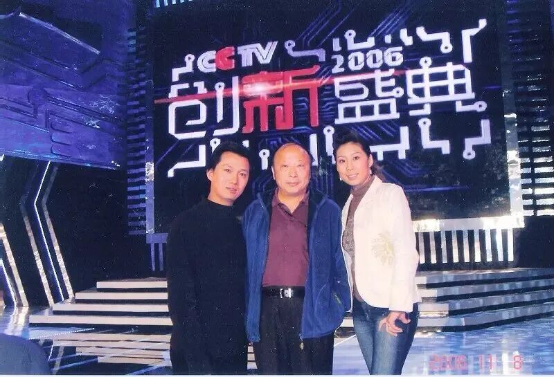 2006年刘凯群与妻子范美娜在央视演播厅与魔术大师傅腾龙(左二)合影
