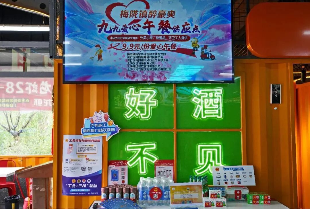 巧合的是,梅陇镇汽修行业工会联合会主席郭本柱也在关注新就业群体的就餐问题,当他们找到刘凯群,提出是否能提供爱心午餐,双方一拍即合。“吃饱为止,米饭随便加!”于是,9.9元的餐食出炉了!梅陇镇汽修行业工会联合会也主动伸出援手,每卖出1份午餐,补贴5块钱,还有上海沣奕建设咨询有限公司、上海优坊贸易有限公司等企业加入这场爱心活动。