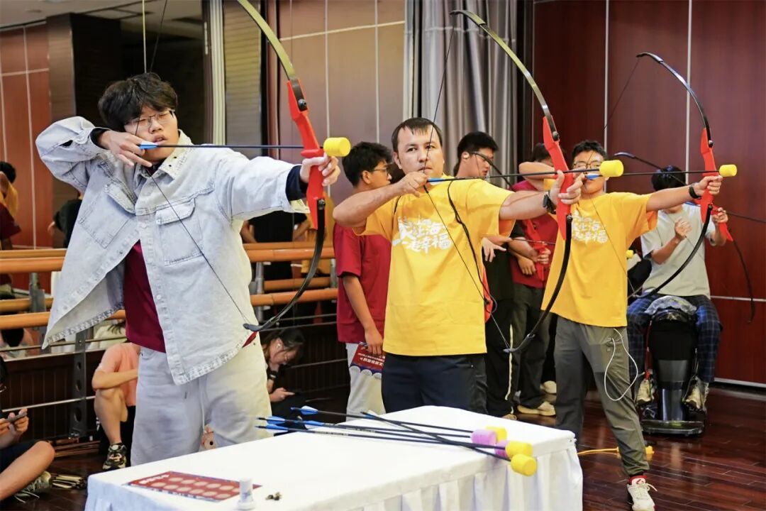 上午,复兴中学的比赛现场活力涌动。毽球比赛中,彩毽如燕穿梭,选手巧妙融合传统踢法与排球规则,展开一轮轮精彩对抗;押加赛场,运动员化身“大力士”,在绳带间展开力量与技巧的角逐;射箭场上,选手凝神屏息、张弓瞄准,尽显传统射艺的沉稳与精准。