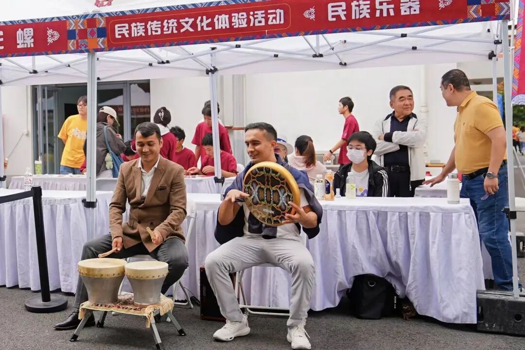 下午的虹口体育馆变身为非遗文化体验乐园。非遗展区内,传承人现场展演民族乐器制作、刺绣等技艺;文化体验区里,电子骑马、石锁挑战、壮族高杆抛绣球等10余个项目吸引市民踊跃参与,现场还不时传来“沙嘎”游戏带来的阵阵童趣笑声;史料展则通过珍贵资料,诉说着沪上各族群众交往交流交融的动人故事。