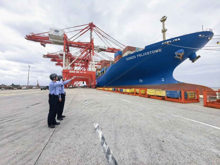 继来自秘鲁、南非等国家的进博会展品海运抵沪后,上海港又迎来新西兰等国家的进博会展品。10月21日11时许,搭载第八届进博会海运展品的集装箱货轮“中远费力克斯托”轮靠泊上海外高桥口岸。上海边检机关联合口岸单位为载运进博会展品的船舶开通“绿色通道”,助力第八届进博会展品安全准时入境布展。