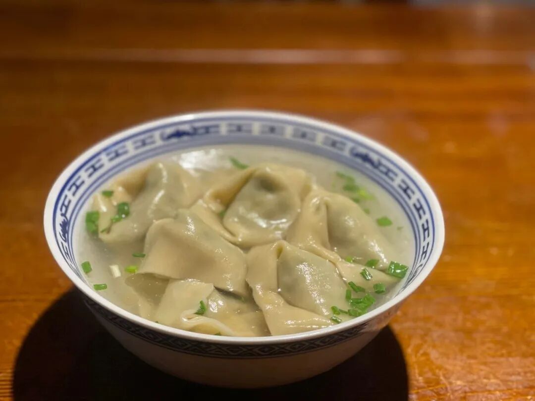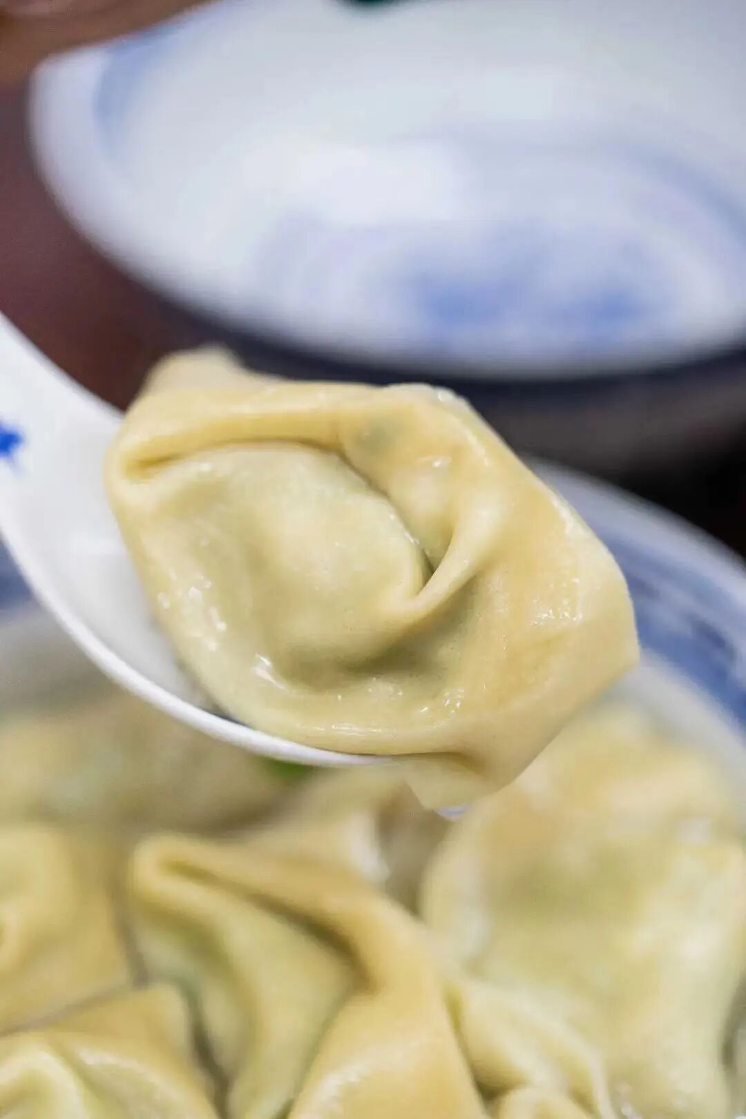 盛兴的馄饨保留了国营点心店时期的味道,汤底有猪油、鲜辣粉,味道浓郁。大馄饨馅料扎实,黑麦碱水皮在清汤里泛出黄灿灿的色泽,看着就很有食欲。
