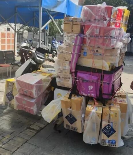 据多地网友爆料,山姆配送员的电瓶车前后均装满了要配送的货物,导致配送员骑车时几乎没有位置可坐,只能小心翼翼地骑行。