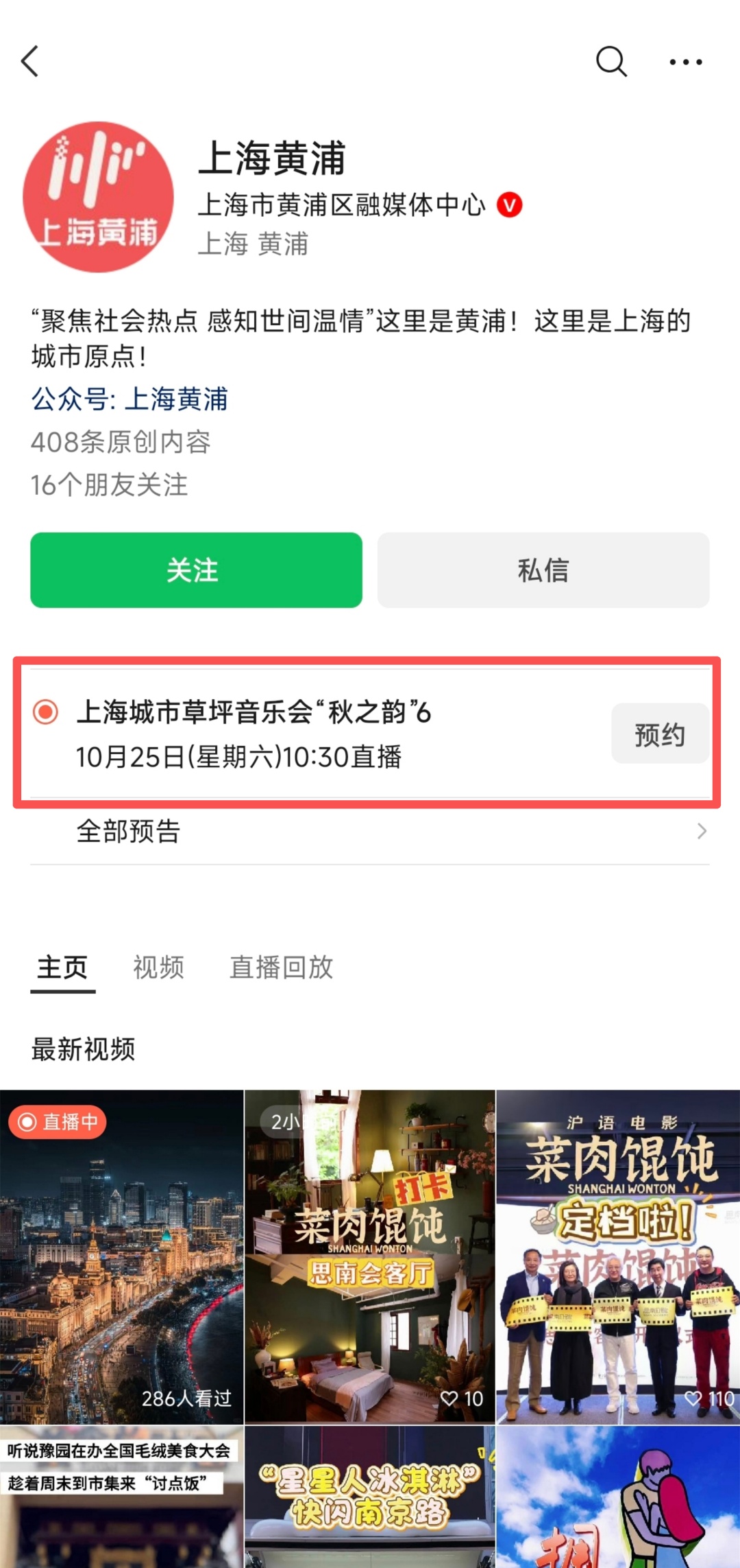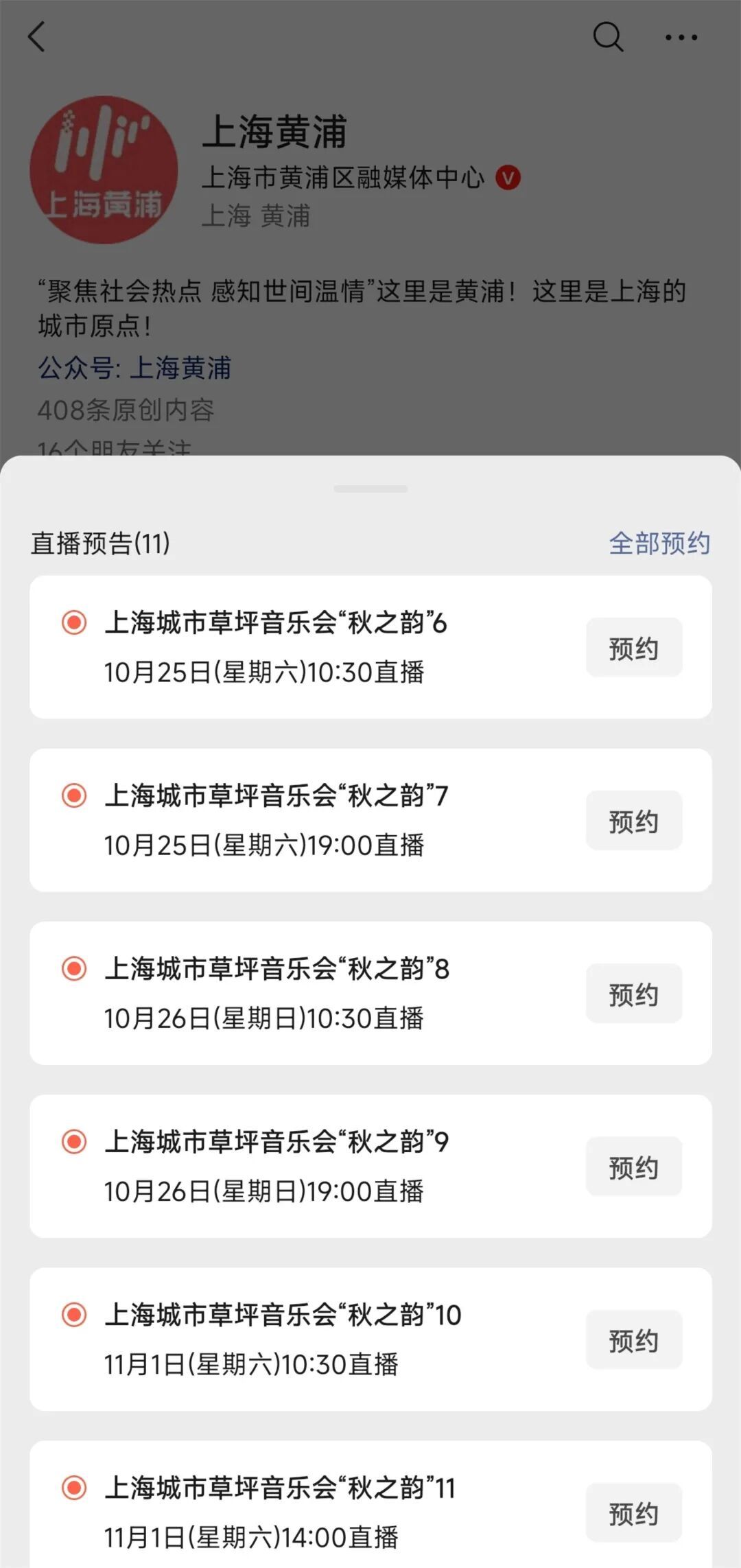 关注“上海黄浦”官方微信公众号—选择“视频号”栏目—点击“预约”,届时可在“视频号”里收看直播