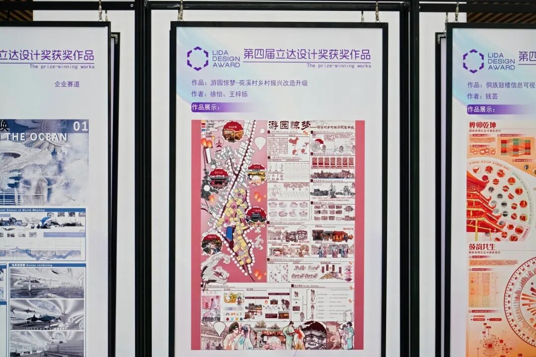 第四届“立达设计奖”围绕成果展示、资源对接、专业交流三大核心,开展系列活动。优秀作品展作为现场核心亮点之一,通过沉浸式布局,整合图文展板、实物模型、数字交互等形式,呈现本届大赛中的优秀作品。展品既有突破思维边界、展现创意张力的非命题创作,也有贴合市场需求、具备落地潜力的企业命题方案,以及聚焦社会议题、传递温暖力量的公益设计作品,吸引嘉宾、参赛者及师生驻足观赏、交流品评。