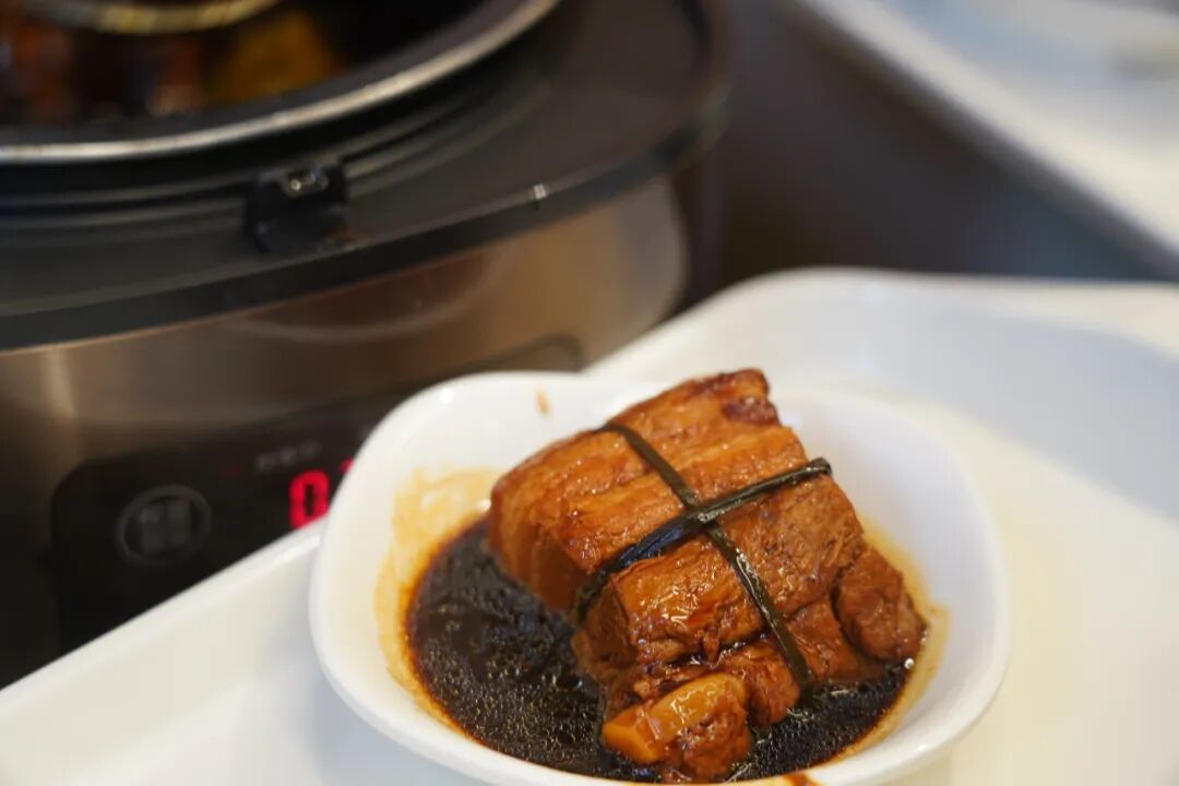 而热卤黄草扎肉则深受嘉定本地阿姨爷叔的青睐,吴阿姨品尝扎肉时毫不费力,筷尖轻触便让肉丝分离。她欣喜地表示,这火候让肉变得软糯入味,正是老年人喜爱的口感,“真的是嘉定老味道,冒着热气,咸甜适中,一口下去真的是暖胃又暖心,自家做不出这个味。连汤汁都嗦干净,拌进饭里太香了。”