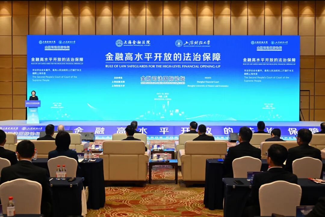 上海金融法院院长赵红,最高人民法院民事审判第二庭副庭长王朝辉,卡塔尔国际法院监管法庭庭长、最高人民法院国际商事专家委员会专家委员威廉·布莱尔(Sir William Blair),日本东京大学法学部法学政治学研究科教授溜箭将之(Masayuki Tamaruya),美国密歇根大学法学院教授郝山(Nicholas Calcina Howson),上海财经大学法学院院长、教授宋晓燕作主旨演讲。