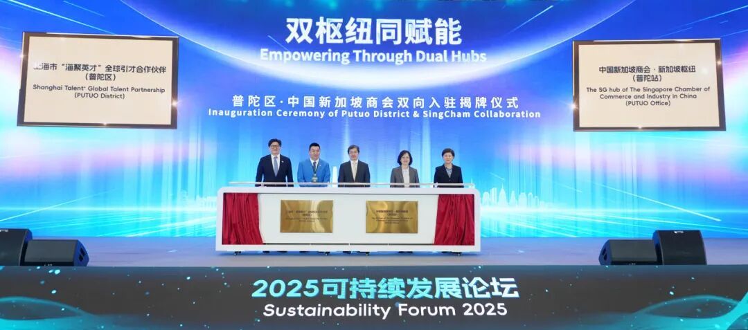 近年来,普陀始终坚持人才与创新相结合,积极融入“海聚英才”品牌建设,打造了全市首个“海聚英才”常态化路演大厅;始终坚持国际化人才视野,深化海内外合作。今年上半年,在市委人才办、市人才工作局的指导下,普陀区“新加坡海外人才工作站”正式揭牌,普陀与中国新加坡商会、南洋理工大学等正式结缘,开启了双向合作的新篇章。为建立更加密切的战略伙伴关系,论坛开幕式上,普陀区政府与中国新加坡商会共同签署合作备忘录,双方将围绕双向人才干部交流培训、企业出海、产业链协作、科技成果跨国孵化展开深度合作。
