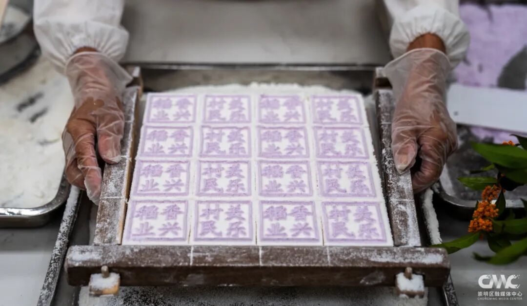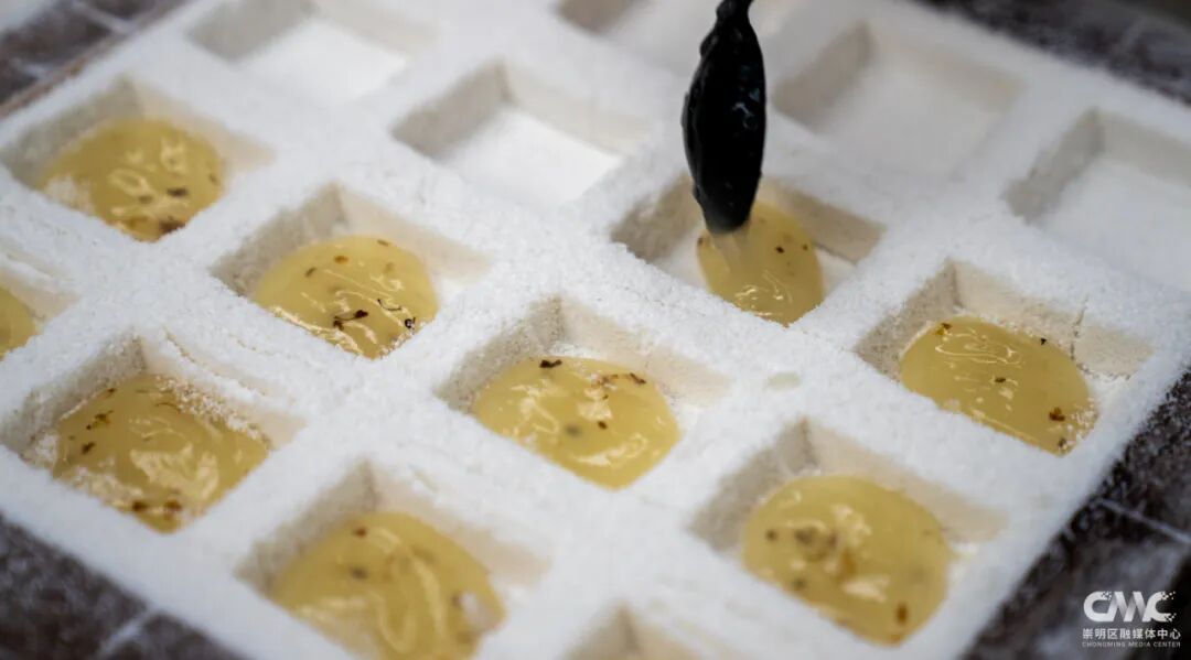 除了视觉与嗅觉的享受,这份秋日限定美好还能从舌尖品味。新村乡米食体验中心于近日推出了时令特色桂花印糕。师傅们将清甜的桂花馅料细心包入雪白的米粉中,再经传统模具压制成型,制作出一枚枚精致软糯的糕点,为市民的赏秋之旅再添一味雅致的甘甜。