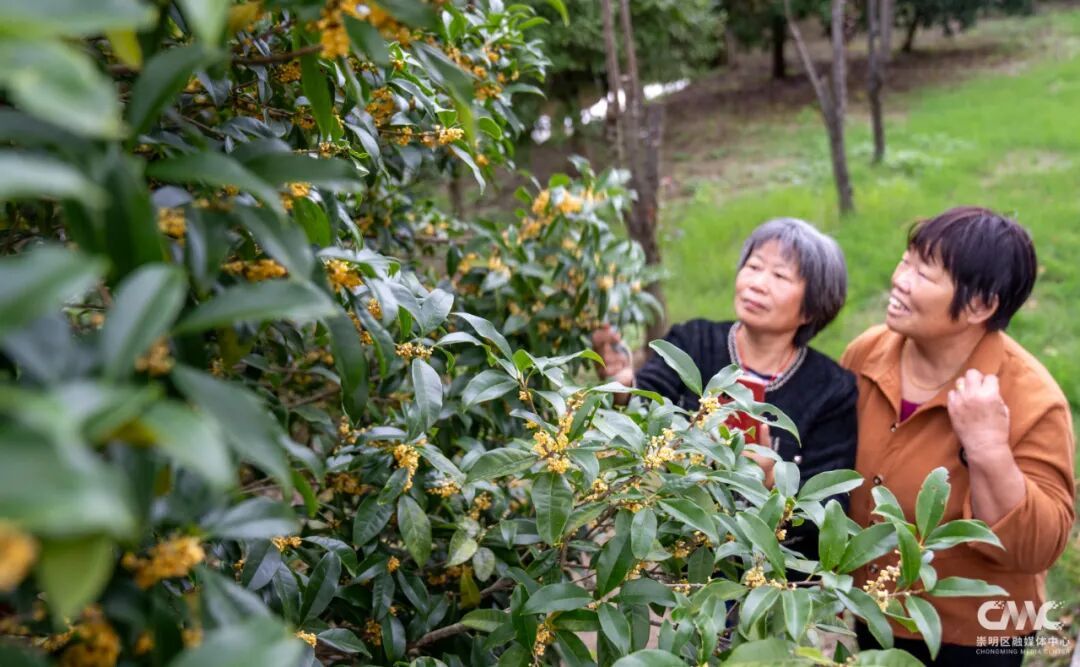据了解,新村乡桂花科普公园建于2015年,占地面积37亩,园内共种植了金桂、银桂、丹桂和四季桂四大类品种,总计超过六百株。其中,金桂香气最为浓郁,银桂清新淡雅,丹桂色泽橙红艳丽,而四季桂则可于春秋多次开花,各具风姿。