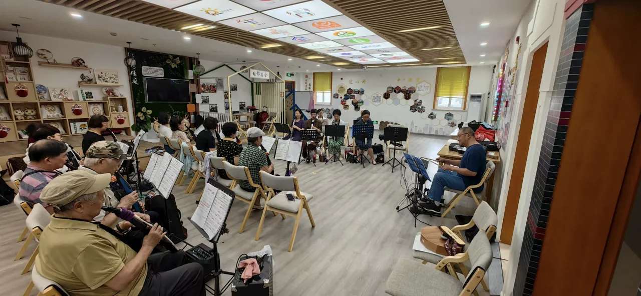 银龄们的舞台闪耀并非偶然,大宁路街道的为老服务是其活力源泉。在文化滋养方面,街道提供免费活动场地,如大一居民区老年活动室,每天清晨都有老人练习电吹管,赵老师与队友们在此从生疏练到熟练,从独自练习到组队演出,音符见证成长与快乐。在生活关怀上,街道构建“15分钟养老服务圈”,社区食堂的热乎饭菜、志愿者的暖心帮助、联动医疗单位的健康义诊等,将便利与温暖送到老人身边。正如一位老人所说:“生活无忧,精神有寄托,我们自然越活越有劲儿!”