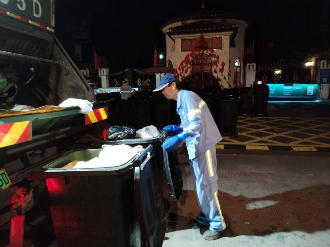 作品概述:工作人员正有序清运生活垃圾,将干垃圾桶内的垃圾装载至干垃圾清运车内。他们用辛勤的劳动,守护着城市环境的整洁,保障着垃圾分类链条的高效运转。