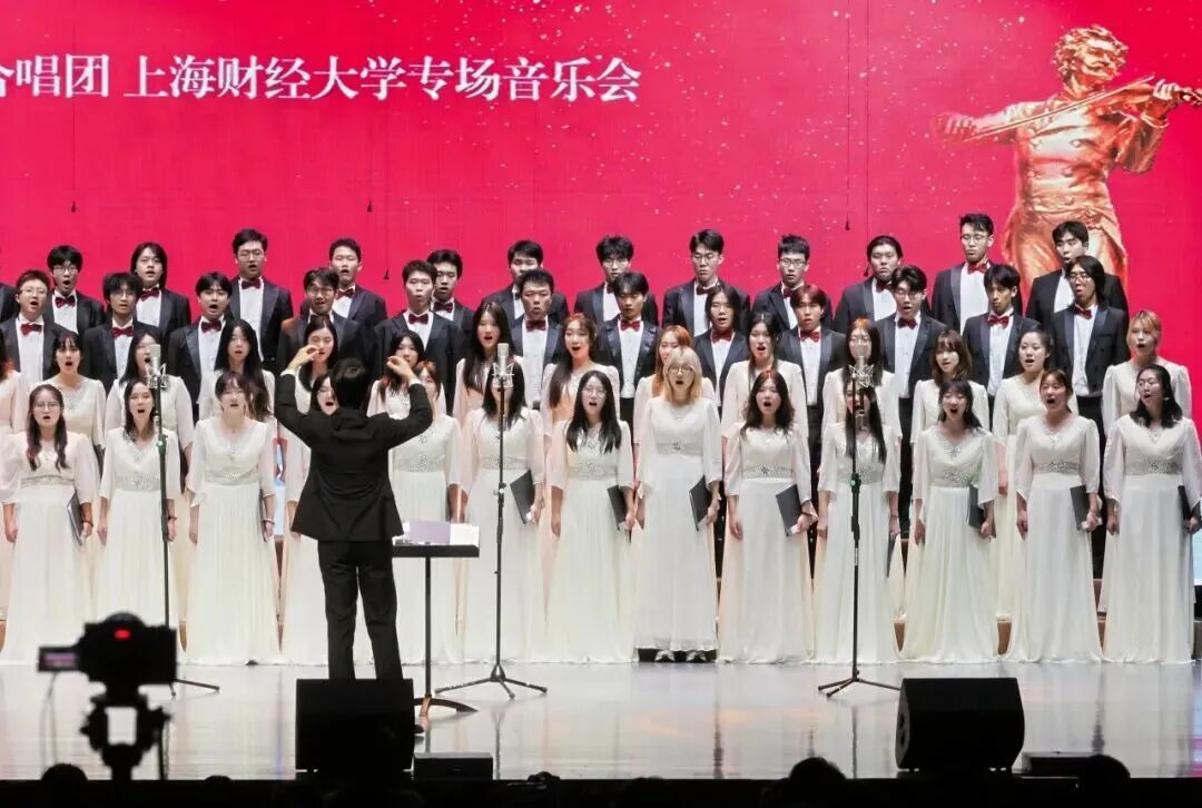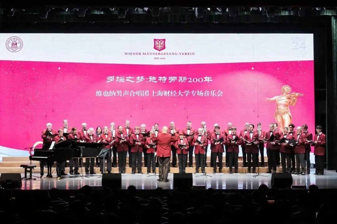 维也纳男声合唱团团长兼指挥根特·莫豪普特,是一位多才多艺的音乐家。他不仅是作曲家,创作了包括音乐剧、歌剧、清唱剧以及合唱和管弦乐作品在内的众多佳作,还是一位经验丰富的合唱指挥家。在他的带领下,合唱团精彩呈现了每一首曲目,赢得了现场观众的阵阵掌声。 随后,上海财经大学学生合唱团在常任指挥张天老师的指挥下演绎了融合唐代诗人孟浩然诗意与合唱悠扬音色的作品《舟中晓望》。《舟中晓望》以唐代诗人孟浩然的山水诗为词本,钢琴的流动织体与竹笛的悠远音色交织,勾勒“挂席东南望,青山水国遥”的江舟画卷。作品通过声部虚实交替与器乐留白,暗合水墨画“以空代实”的东方美学,诠释诗人独坐轻舟、物我两忘的超然心境,续写中国文人“山水寄情”的精神追寻。 音乐会在维也纳男声合唱团与上海财经大学学生合唱团共同演绎的歌曲《我爱你中国》中达到高潮。中外合唱团团员共同营造了丰富的和声效果,赋予了这首中国作品新的艺术生命力和国际表达。 党的二十届四中全会强调,要发展具有强大思想引领力、精神凝聚力、价值感召力、国际影响力的新时代中国特色社会主义文化。此次维也纳男声合唱团的来访,是上海财经大学贯彻落实全会精神,推动中外人文交流的重要实践。今后,校团委将充分激活校内外资源联动效能,持续发挥“行知”系列美育活动“请进来、走出去”的特色,着力构建跨文化、跨学科、跨领域的立体化美育实践教育体系。同时,不断建立与深化与世界一流、国内顶尖院团的协同育人机制,谱写具有上财特色、中国气派、世界影响的新时代美育教育新篇章。 观演感受 宗佳潼 2025级统计与数据科学学院本科生 今夜,声音有了具体的形状。维也纳男声合唱团的歌声,不是扑面而来的声浪,而是一片可以走入的、立体的音场。他们不依赖任何乐器,人声本身就是最精妙的乐器。从轻若羽毛的民间小调到结构恢弘的古典乐章,层次分明,呼吸同步,展现了一种极致的纪律与和谐。那是一种洗净铅华的优雅,是几个世纪音乐传统的活态传承。闭上眼,便能瞥见多瑙河的波光、维也纳森林的微风,一切都化作旋律,在合唱的魔法中,完成了一次对耳朵与心灵的温柔洗礼。 孙宇飞 2024级商学院本科生 这场纪念约翰·施特劳斯的男声合唱音乐会,让我第一次如此真切地感受到“人声即是乐器”的魅力。没有华丽的交响编制,只有纯粹的男声在空气中交织,却能构筑出华尔兹般流动的旋律与维也纳黄金时代的梦境。施特劳斯的音乐本就富有舞蹈性与节奏感,而男声的浑厚与温润,为这些旋律赋予了全新的生命力。更令我动容的是,合唱团成员之间的呼吸、眼神与情绪完全融为一体,让“共同呼吸”成为音乐最本质的力量。这不仅是对施特劳斯的致敬,更是对人类情感与艺术统一力量的见证。 黄海静 2025级金融学院硕士研究生 今夜的音乐会,恰似一场用音符精心酿造的跨文化盛宴。当小约翰·施特劳斯《蓝色多瑙河》的旋律遇见中国古诗意境的《舟中晓望》,当混声联唱的传统形式与《我爱你中国》的赤子深情相遇,我们看到音乐如何跨越山河,成为文明互鉴的最美语言。上海财经大学学子们的歌声,不仅展现了扎实的艺术素养,更传递着年轻一代的文化自信。在这个纪念施特劳斯诞辰200周年的夜晚,音乐不再是简单的怀旧,而是一场跨越时空的创造性对话。它让我们相信,在音符构筑的世界里,不同文明永远可以找到共鸣的和弦,共同谱写人类精神的华美乐章。 来源 | 团委 图文 | 易旸谷(学) 张天 编辑 | 谢雅靖 校对 | 依子贺 审核 | 曹东勃 施蕾