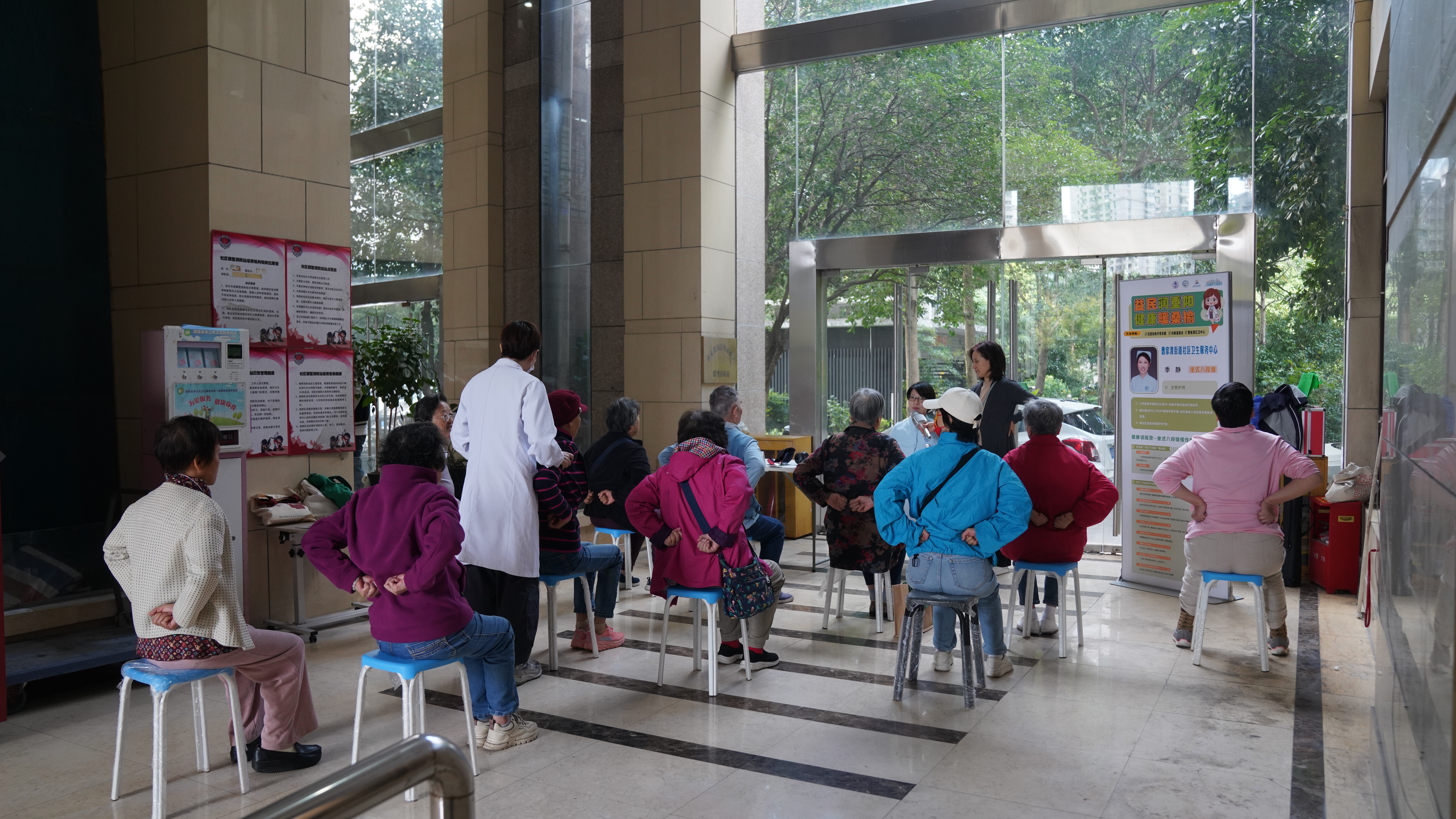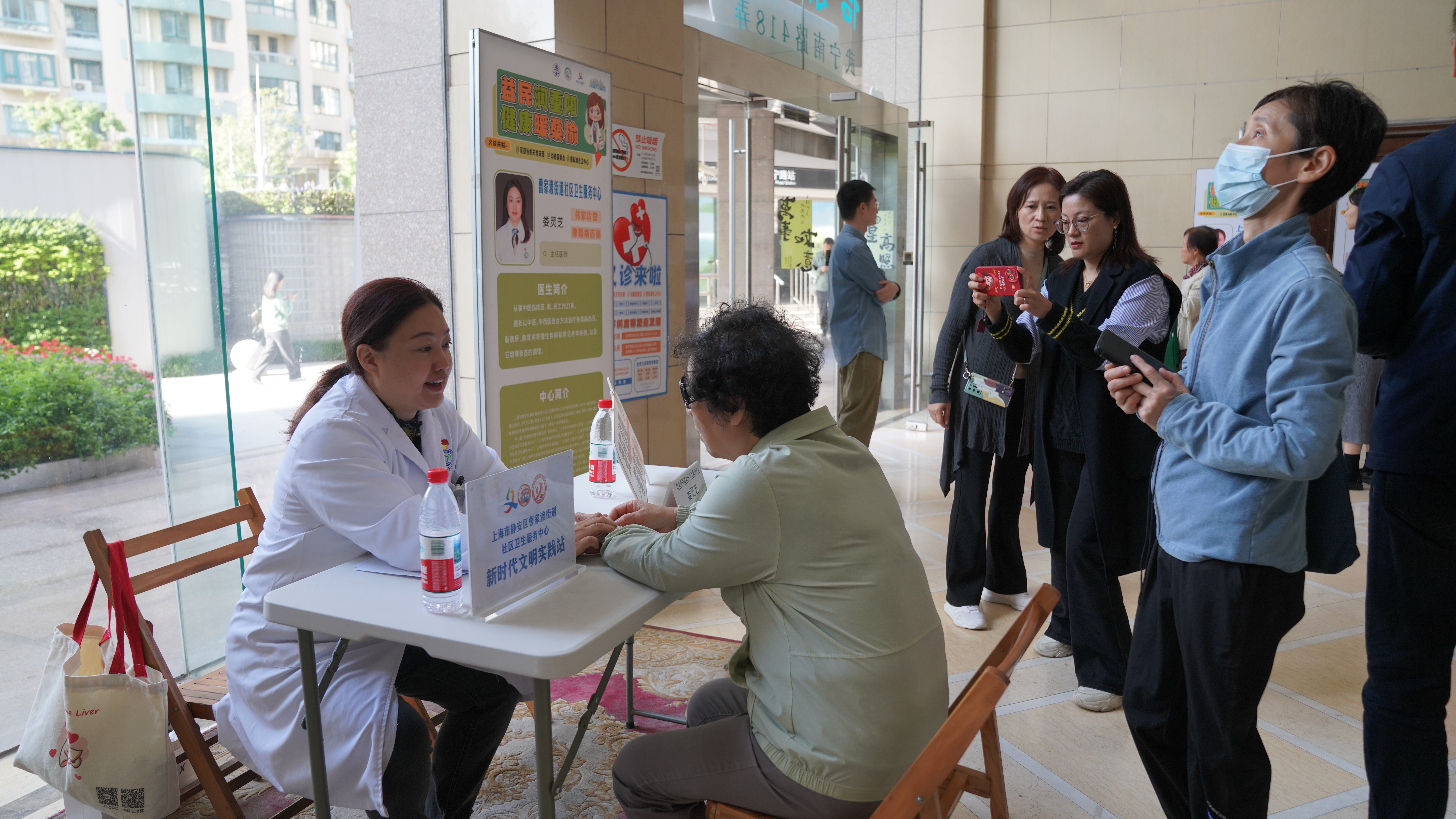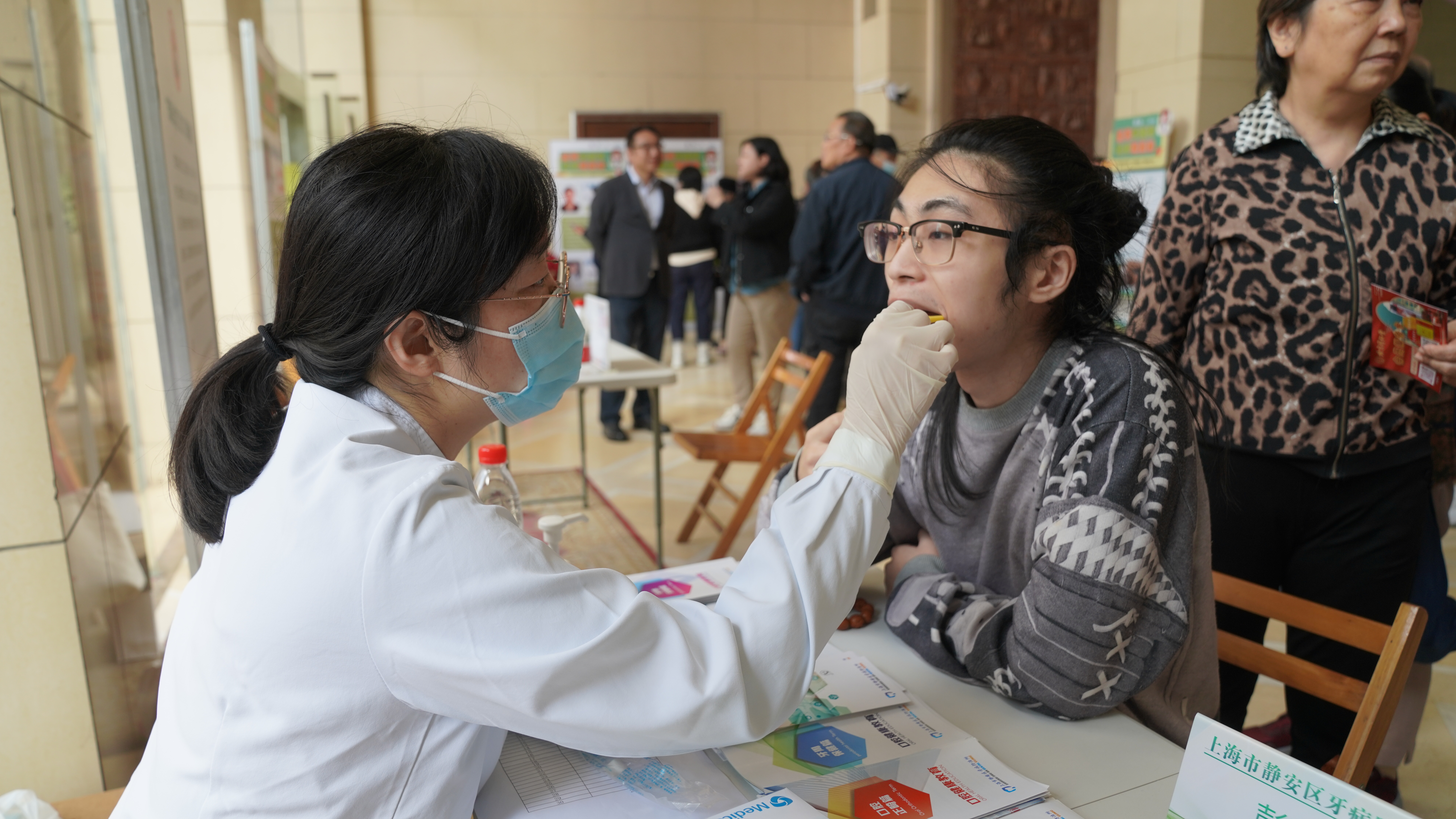 本次“邻家诊堂”阵容强大,活动涵盖了神经内科、呼吸科、脾胃病咨询、血压血糖检测及坐式八段锦教学等多个项目,并特邀静安区中心医院心内科专家孙育民与区牙防所专家彭晶坐镇,吸引了不少居民、附近白领前来,早早排起了咨询队伍。