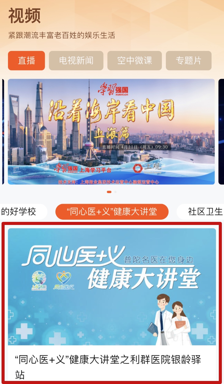 2025年,同心医+义健康大讲堂直播节目将全新出发,带领大家一起走出直播间,实地探访普陀卫生健康网红打卡地,深度挖掘区域卫生健康各类宝藏资源,帮助百姓打破信息壁垒享受更加便捷看病就医服务、积极展示“十四五”普陀卫生健康高质量发展成果。