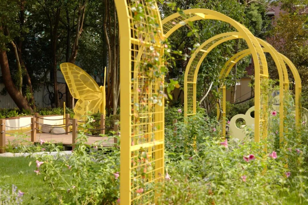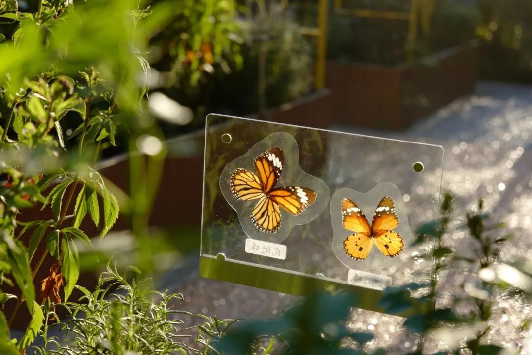 “这片生境花园光照充足,我们注意到园内种植的许多开花植物能够吸引大量蝴蝶。因此,我们决定以蝴蝶为主题元素进行改造提升。”生境花园设计人员介绍,为了营造理想的蝴蝶栖息环境,花园特意配置了多种不同季节的本地蜜源植物和寄主植物,并增设浅水池、蝴蝶栖息架等设施,吸引蝴蝶在此停留、繁衍。同时设立科普展牌等,通过打造“海绵花园”“蝴蝶生态科普教育小径”“蝴蝶学堂”等功能区域,为居民营造出自然疗愈的社区花园。