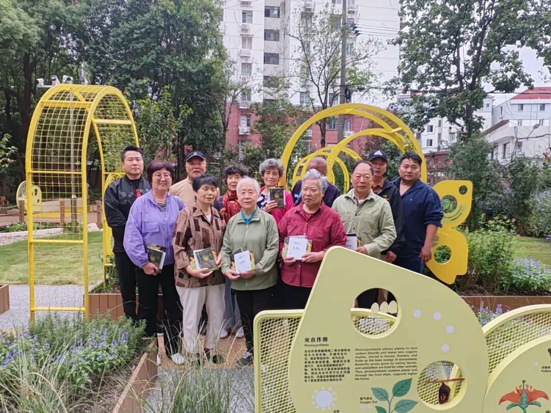 在生境花园改造过程中,居民区还积极推进居民共议共建,通过搭建“规划议事—施工参与—长效维护”全流程参与平台,鼓励居民从“旁观者”转变为花园设计、建设、管理的“主人翁”。这种参与不仅优化了植物配置、增设生态设施,更激发了居民参与社区治理的热情。一年来,由社区居民自发组建的“繁星”自治服务队主动承担起花园的日常维护和科普教育工作,成为这片城市森林的温暖“守护者”。