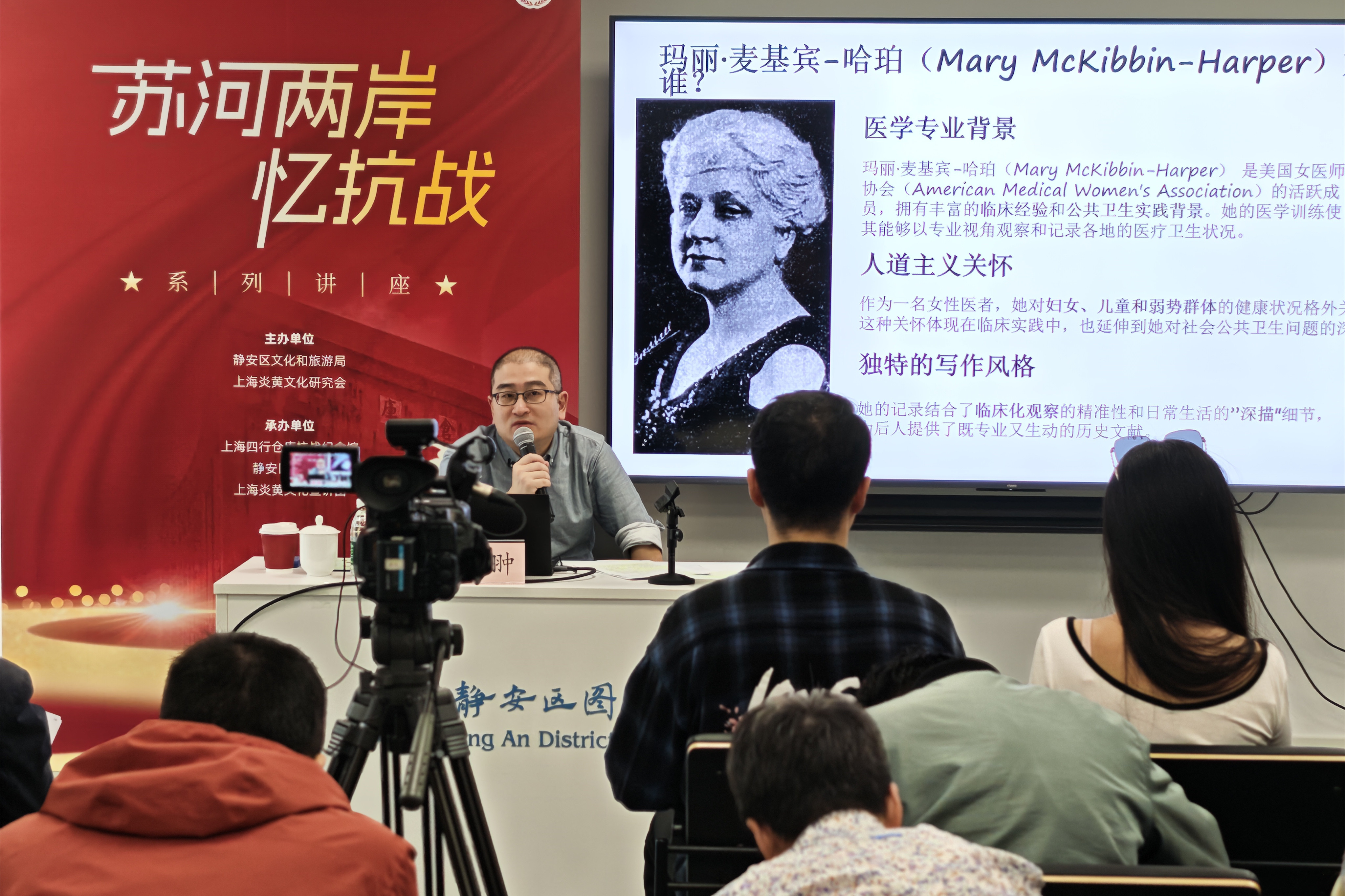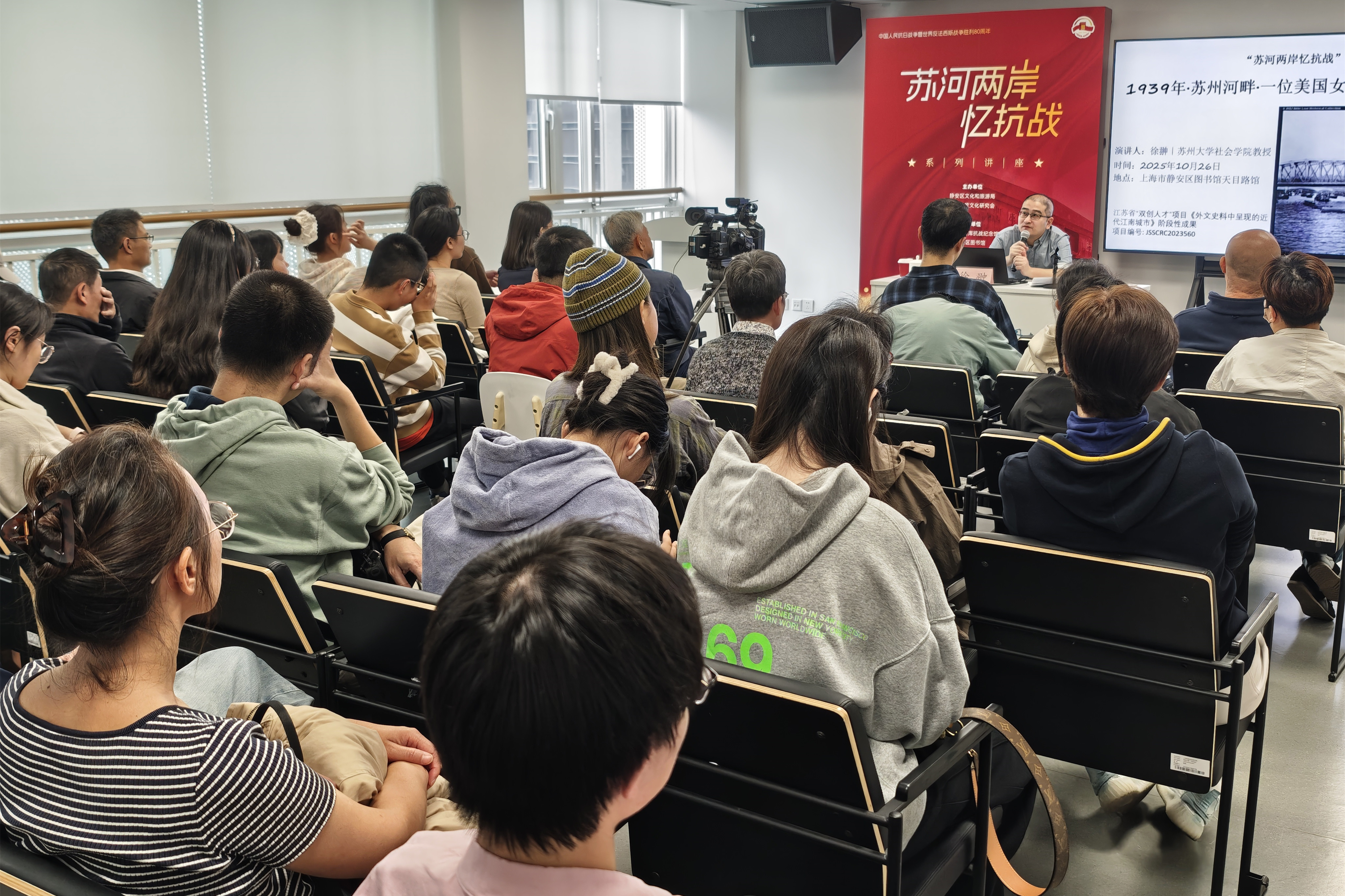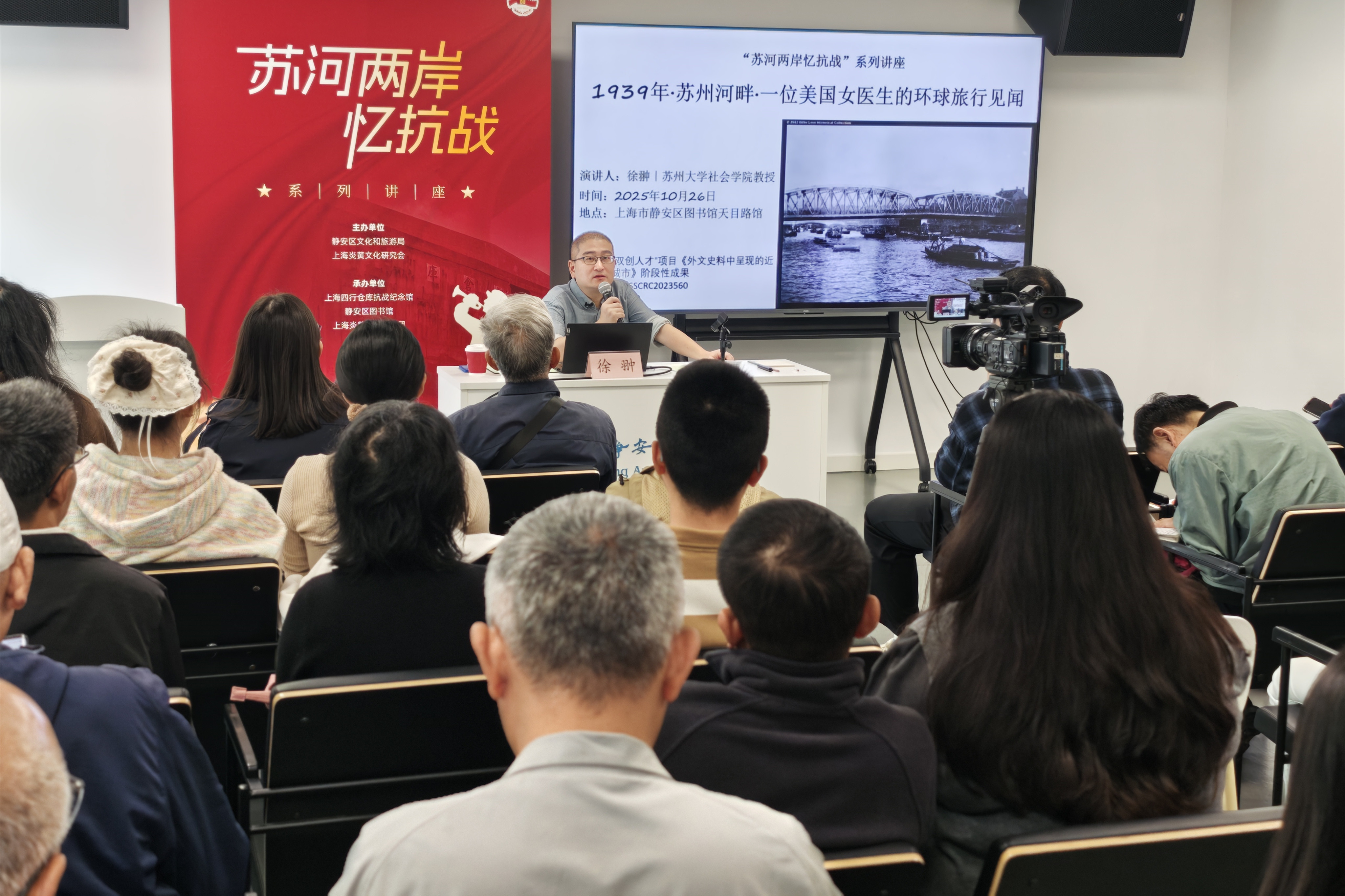 10月26日,“苏河两岸忆抗战”系列讲座第11讲在静安区图书馆天目路馆举行。巴黎政治学院历史学博士,苏州大学社会学院教授徐翀以“1939年·苏州河畔·一位美国女医生的环球旅行见闻”为题,为现场观众讲述一位美国女医生八十多年前在上海苏州河畔的见闻。本次讲座也为“苏河两岸忆抗战”系列讲座画上圆满句号。