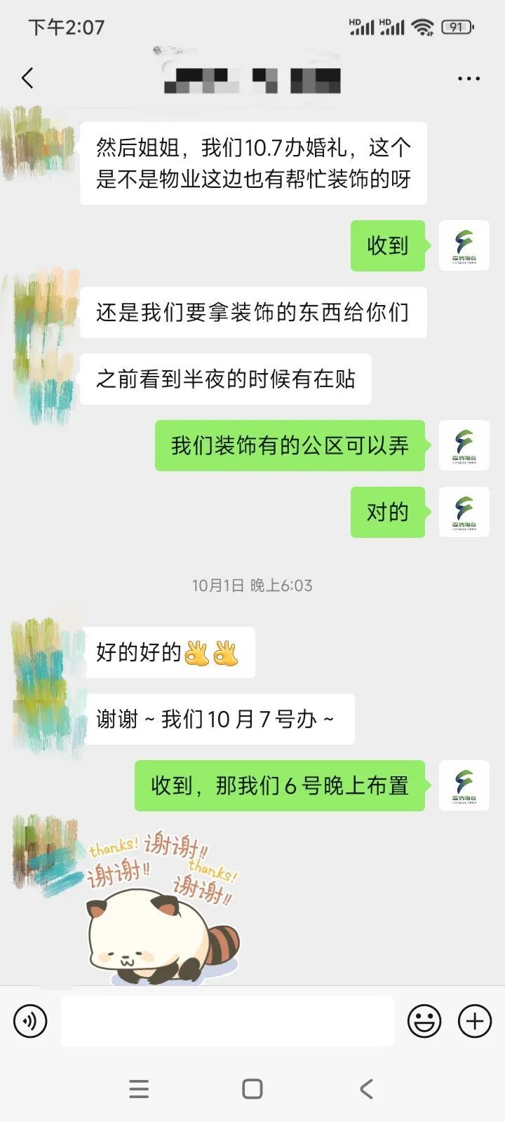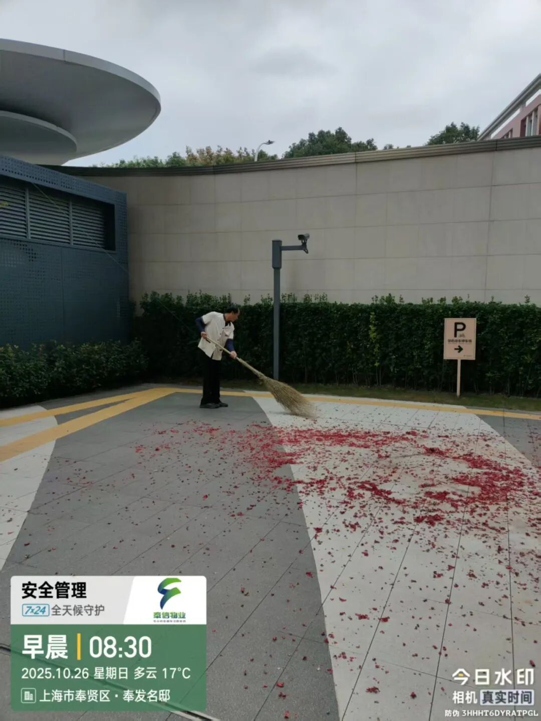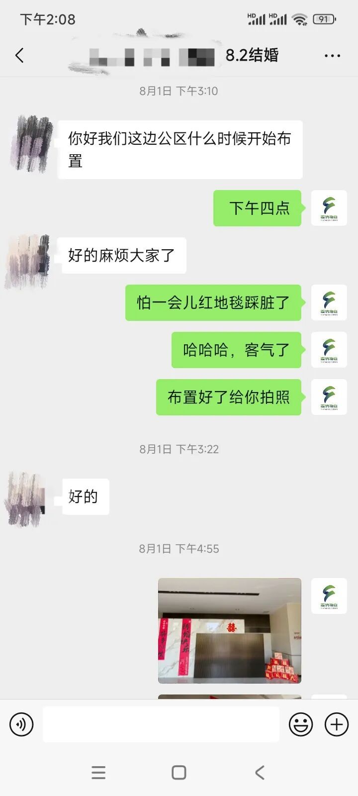 工作人员提前一天围绕“小区主干道—单元门厅—电梯桥箱”的路线,重点进行精致清洁,在确保整体环境整洁后,小心翼翼地在门厅中贴上大气美观的喜字、精巧的窗花,并悬挂上气球等象征吉祥的红色装饰。每一个细节都力求完美,只为让新人与家人在第二天清晨出门时,能收获一份满满的惊喜。