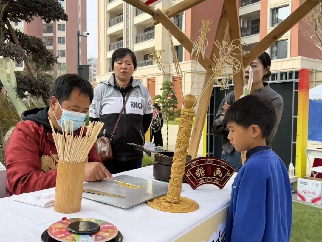 活动现场热闹非凡,设置了内容丰富多彩的互动体验区域,涵盖音乐演出、非遗手作、童年游戏、江南茶歇等,一项项非遗漆扇、糖画、捏面人的传统手工艺体验,让社区人才感受江南文化的魅力。同时,来自科创企业的青年才俊踊跃参与歌唱比赛,展现才华与热情;童年游戏区与茶歇漫谈区则为邻里交流创造了轻松自然的平台。