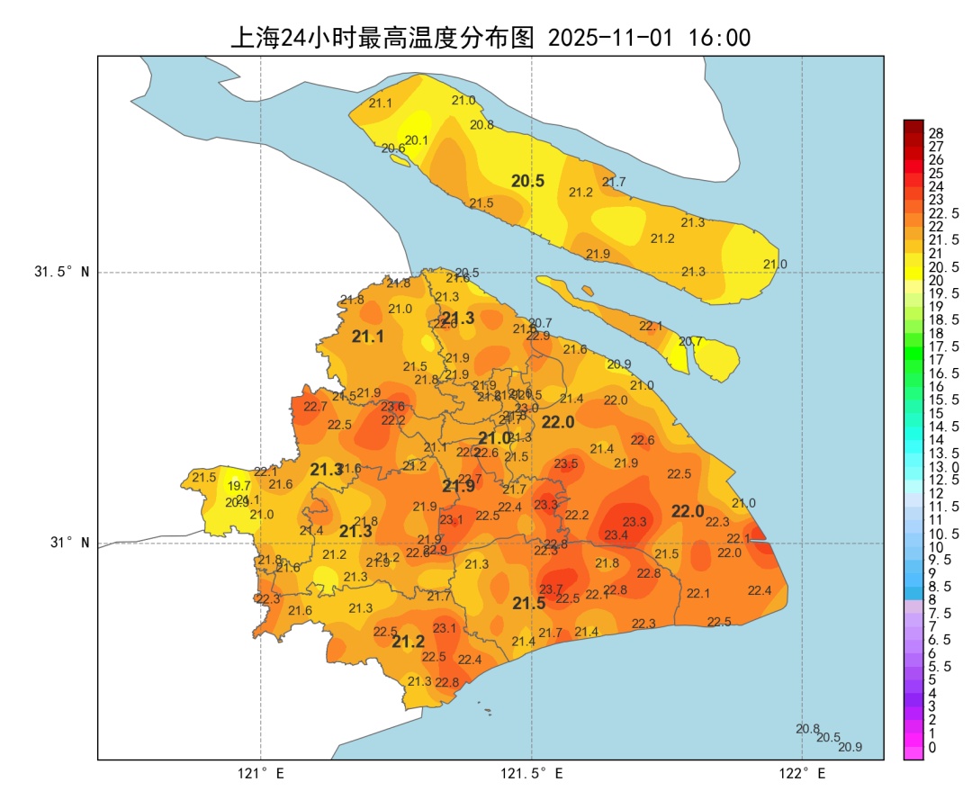 受静稳天气形势影响,今天凌晨本市能见度转差,嘉定、奉贤、崇明等地出现大雾天气,白天多云为主,风小扩散条件不利,空气质量不理想。气温适宜,市区徐家汇站最高气温止步21.0℃。