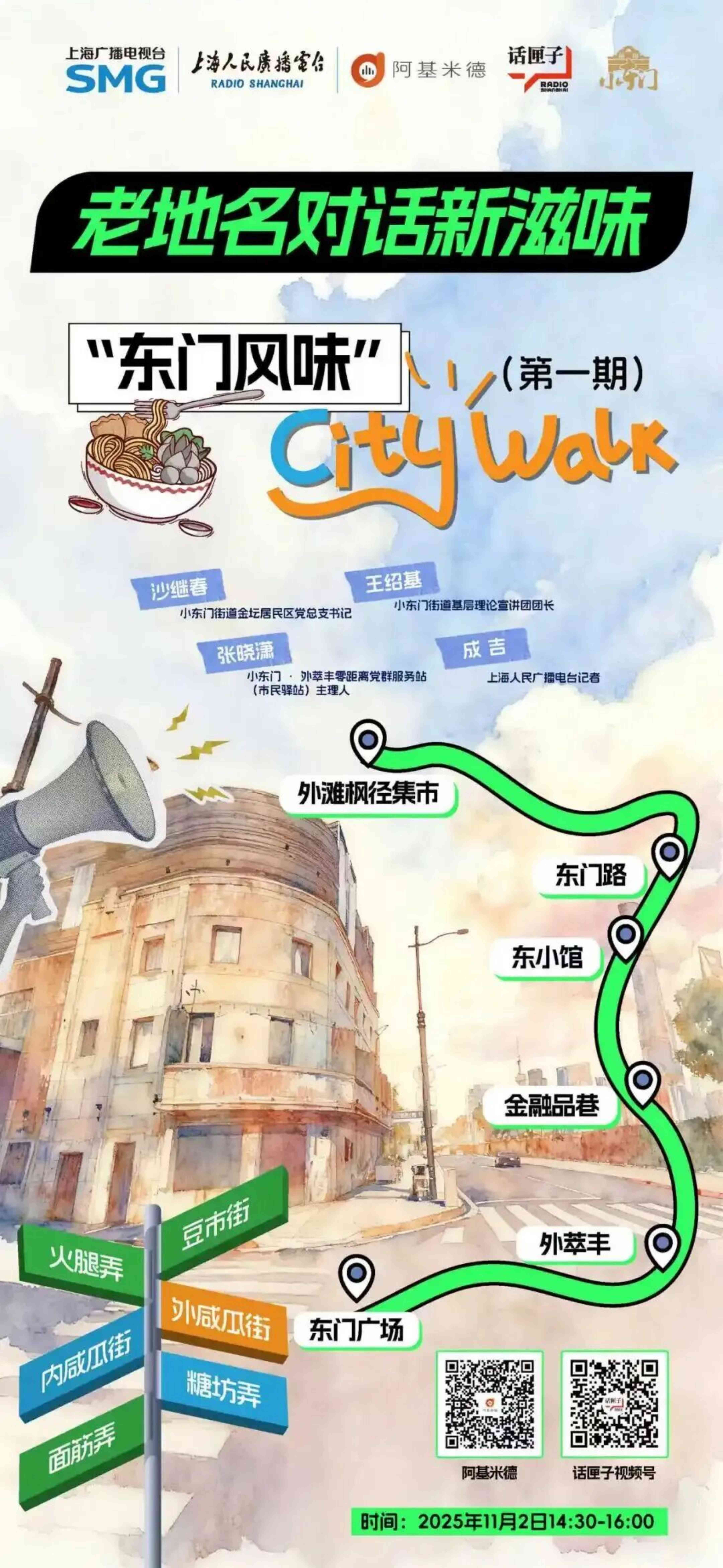 11月2日14:30,“东门风味”Citywalk首场将走进以美食为名的系列老城厢街弄,沿着这些富有特色更有滋有味的街弄深处,走向小东门街道集聚久事大厦、BFC外滩金融中心等重点楼宇的南外滩,挑战极速读懂上海的日与夜,欢迎关注!