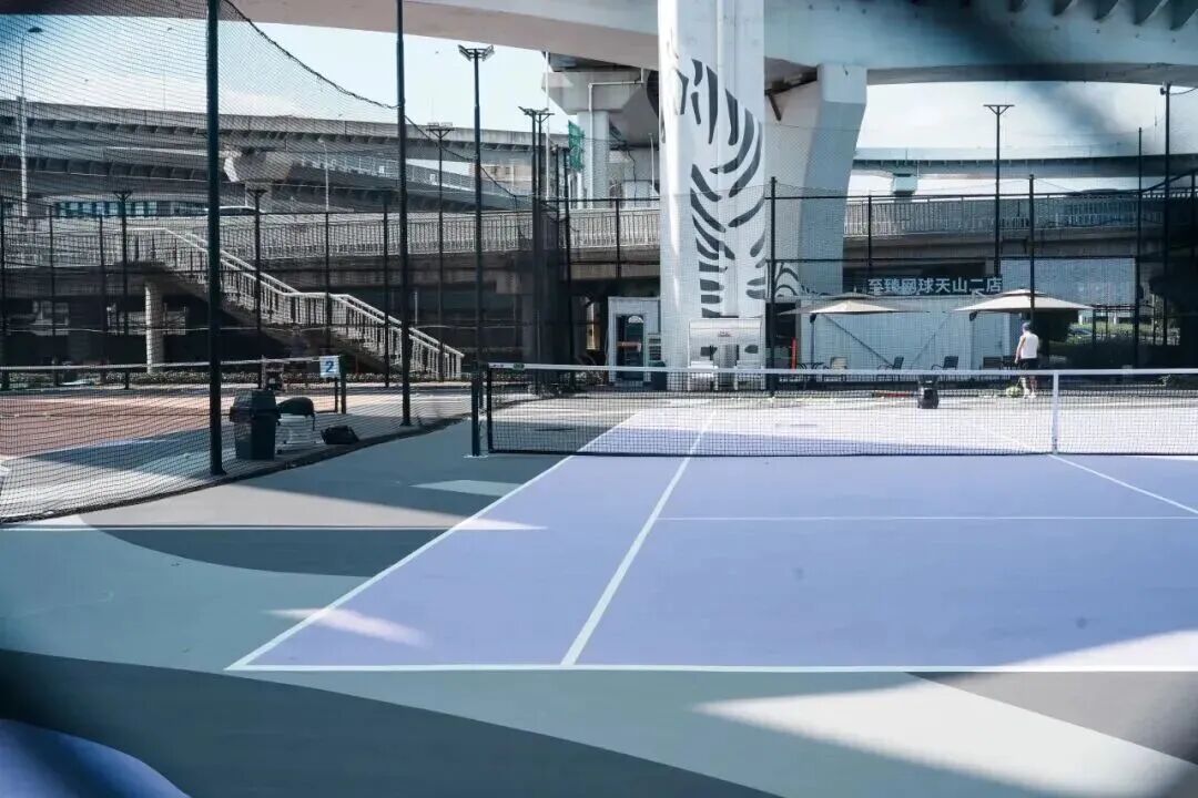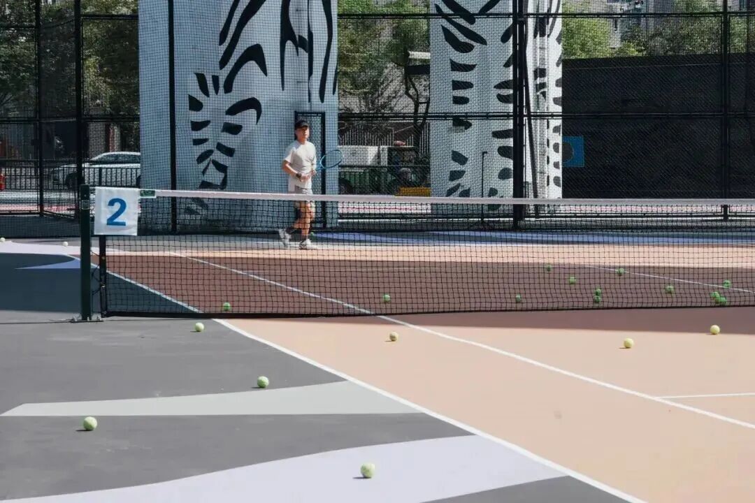 新场地在规模上迎来了大幅度的提升,拥有两片专业的网球双打场地和一片匹克球场地,并配有带顶棚的休息座椅。其中一号场地以奥运同款“巴黎紫”为主色调,二号场地和匹克球场地则选用了红土色。