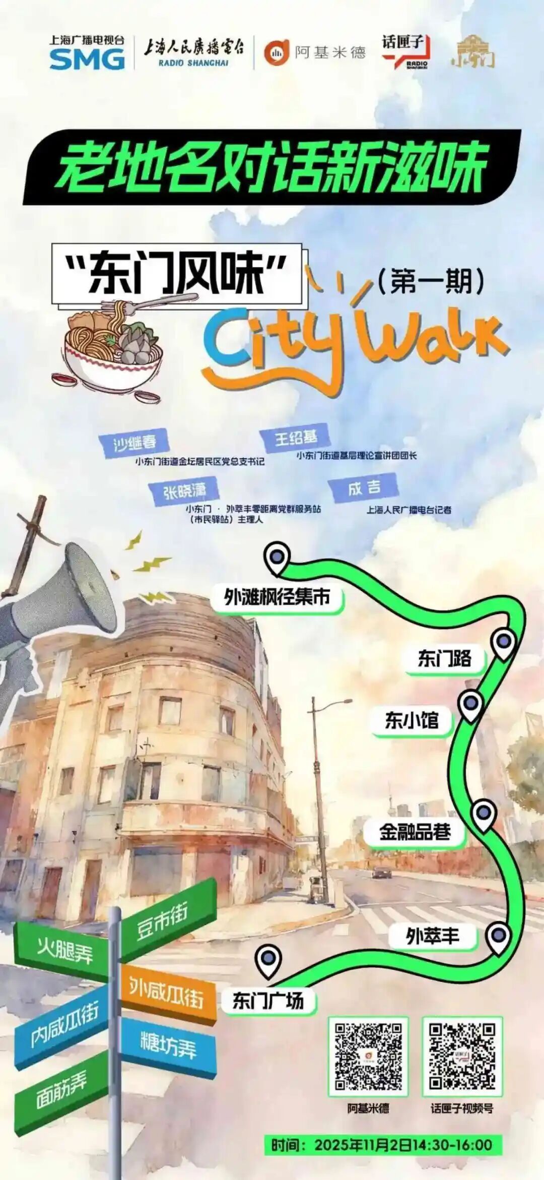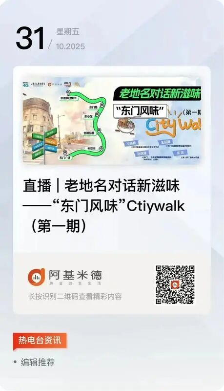 上海人民广播电台、阿基米德传媒与小东门街道特别聚焦老地名背后的故事与发展,策划推出“东门风味”Citywalk系列活动,以行走直播的方式带大众打卡一个个小东门极富特色的老路名,带来老城厢里的新故事。