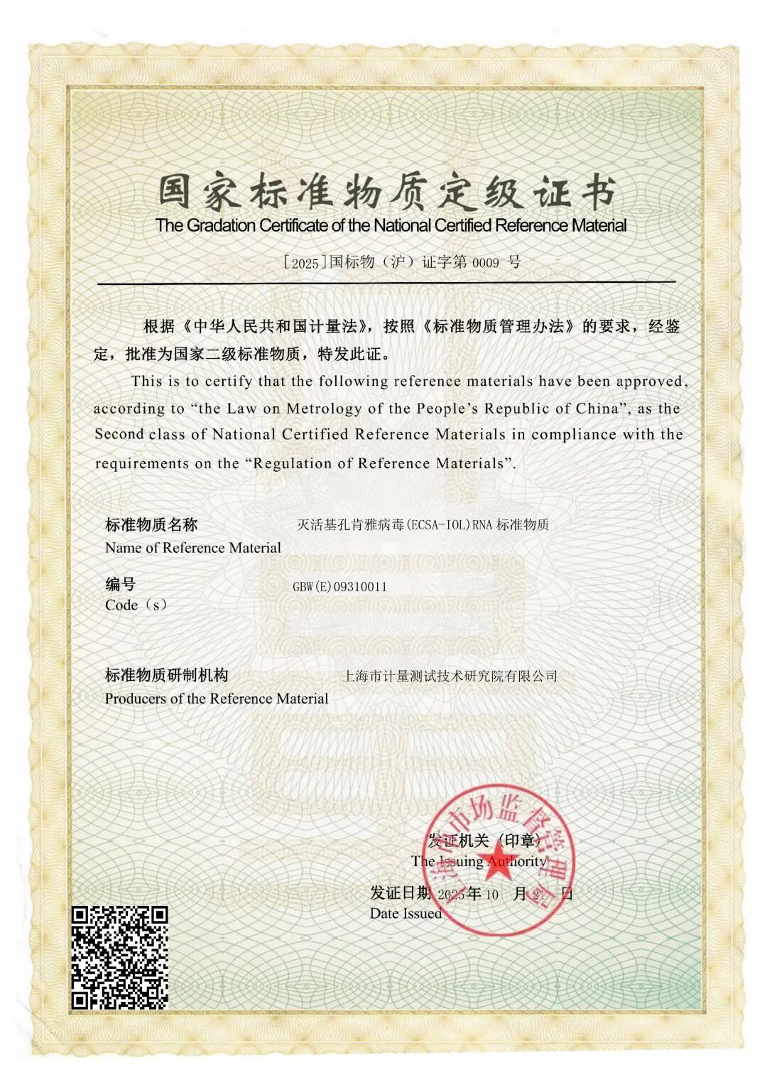 本次获批的两款标准物质,包含两种病毒亚型(ECSA-IOL型与亚洲型),采用灭活病毒形式,保留了完整的病毒结构与全基因组核酸,可模拟真实样本中病毒核酸提取与检测全过程。项目团队通过数字PCR技术对病毒基因组中nsp2与e1基因进行高精度定量,实现了病毒拷贝数浓度的量值溯源。