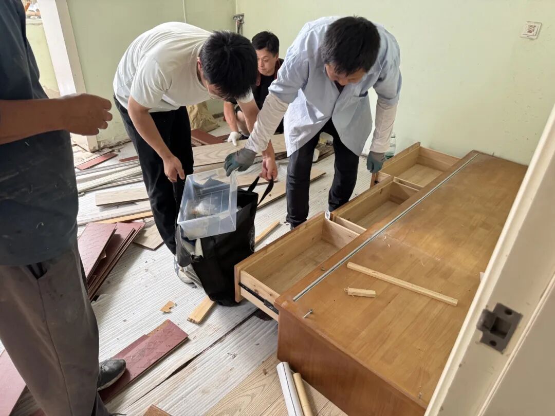困境家庭的情况多种多样,针对不同的家庭构成和居住功能缺失情况,团区委与社工、施工单位共同制定改造方案,确保“一户一策”。对于室内改造,不仅每位青少年会有自己的需求和想法,同时还要兼顾家庭成员的相关需要。设计团队多次上门勘测,反复沟通协调,通过增加软硬隔断、家具定制等方式,为 11户无独立空间的青春期子女实现实现了分床、分房。